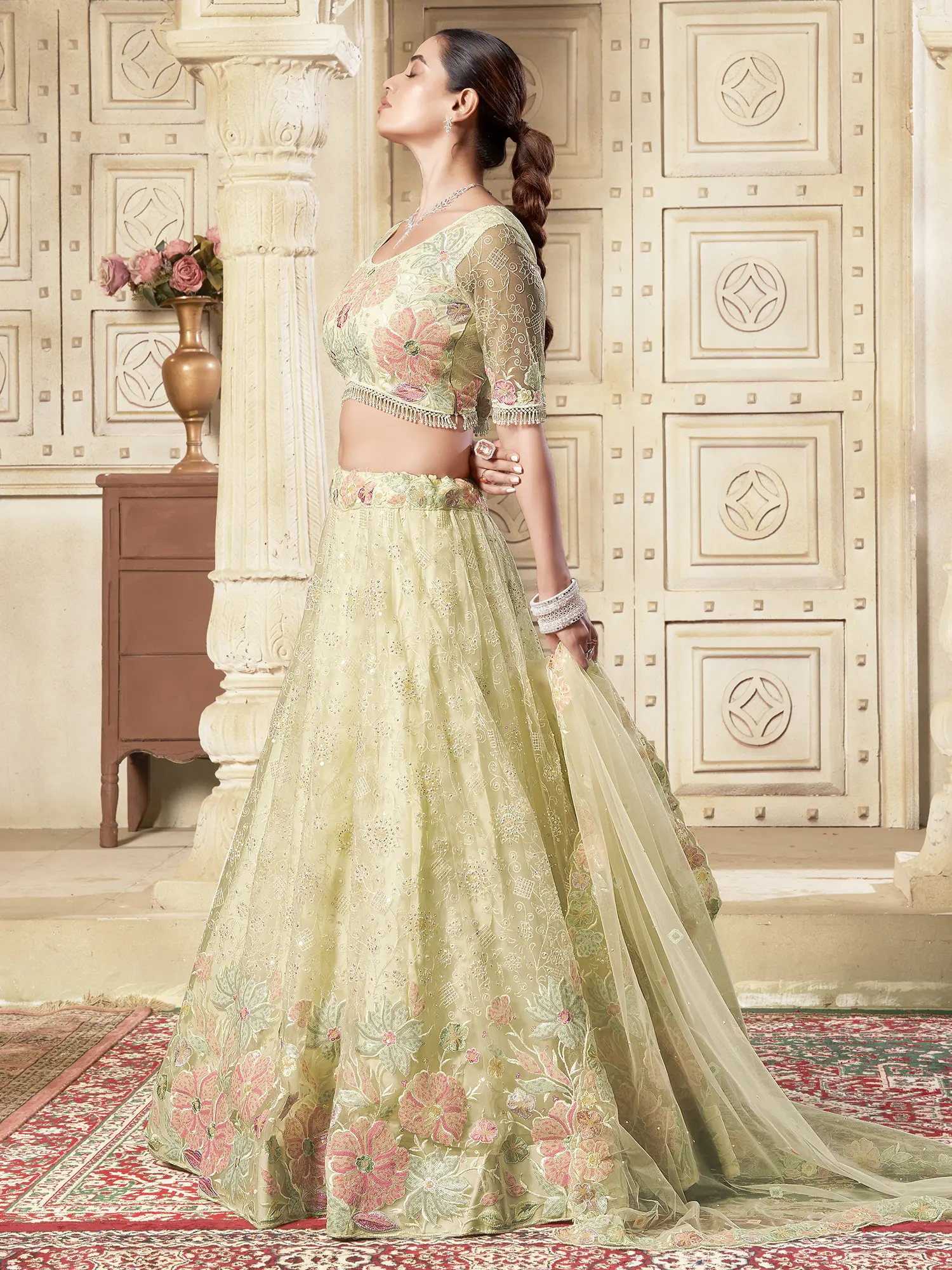 Embrace Elegance in a Light-Yellow Net Lehenga Choli