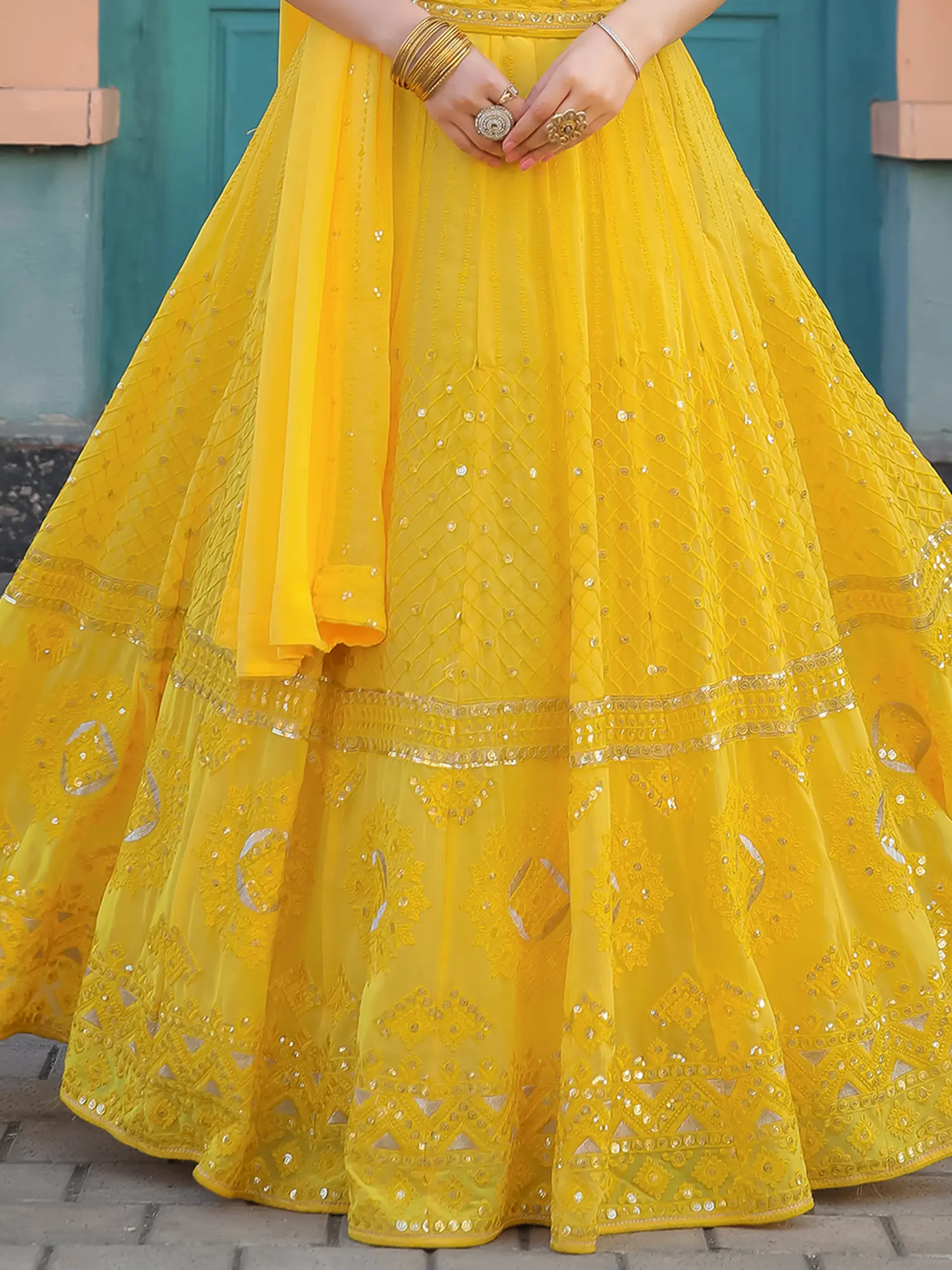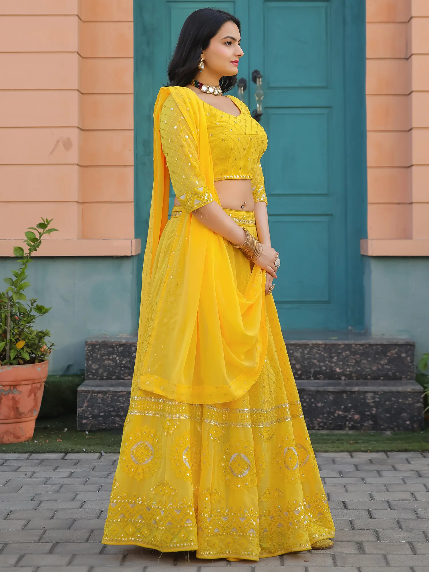 Heavy Sequins And Thread Work Georgette Party Wear Lehenga Choli With Matching Dupatta