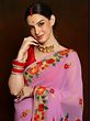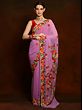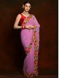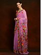 Lilac Georgette Saree with Multicolored Aari Embroidery on Border from Kashmir