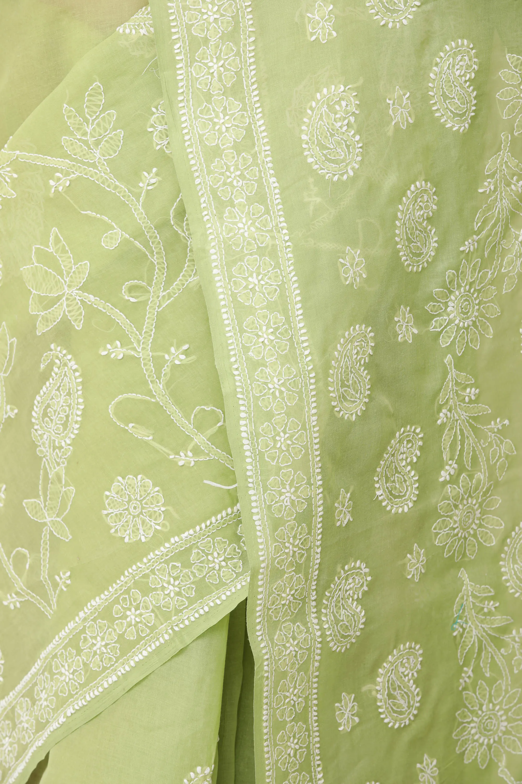 An Emblem of Traditional Elegance: Lily-Green Chikan Saree