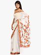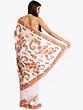 Lily-White Sari from Kashmir with Aari Floral-Embroidery