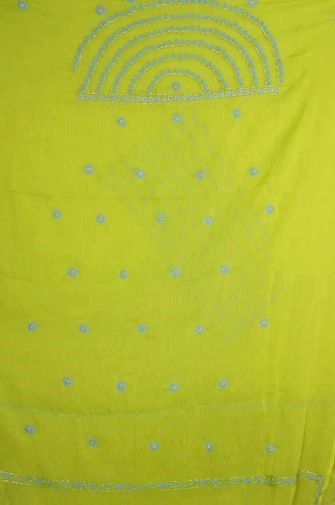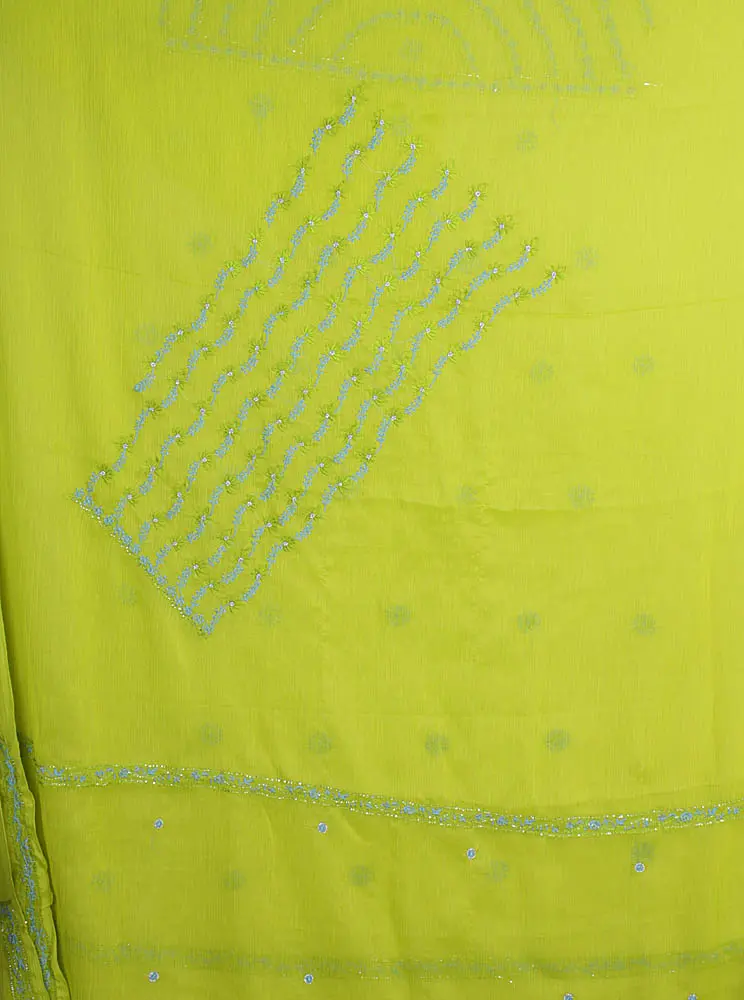 Lime Green Chikan Embroidered Salwar Kameez Fabric from Lucknow with Beadwork