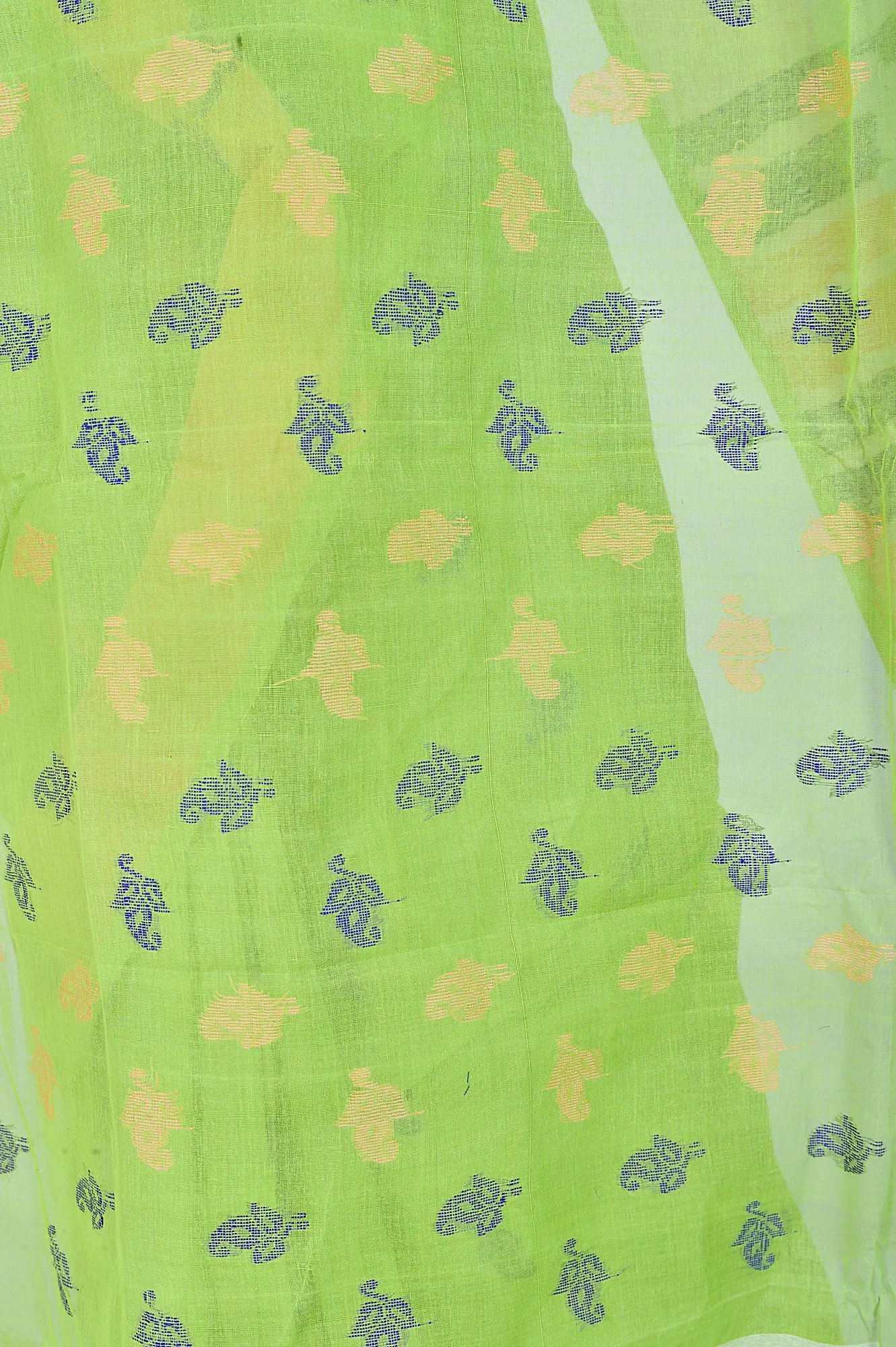 Lime-Green Dhakai Sari from Kolkata with Hand-woven Paisleys and Flowers