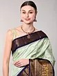 Green-Sheen Art Silk Saree from Bangalore with Zari Woven Floral-Stripe Contrast Border and Pallu