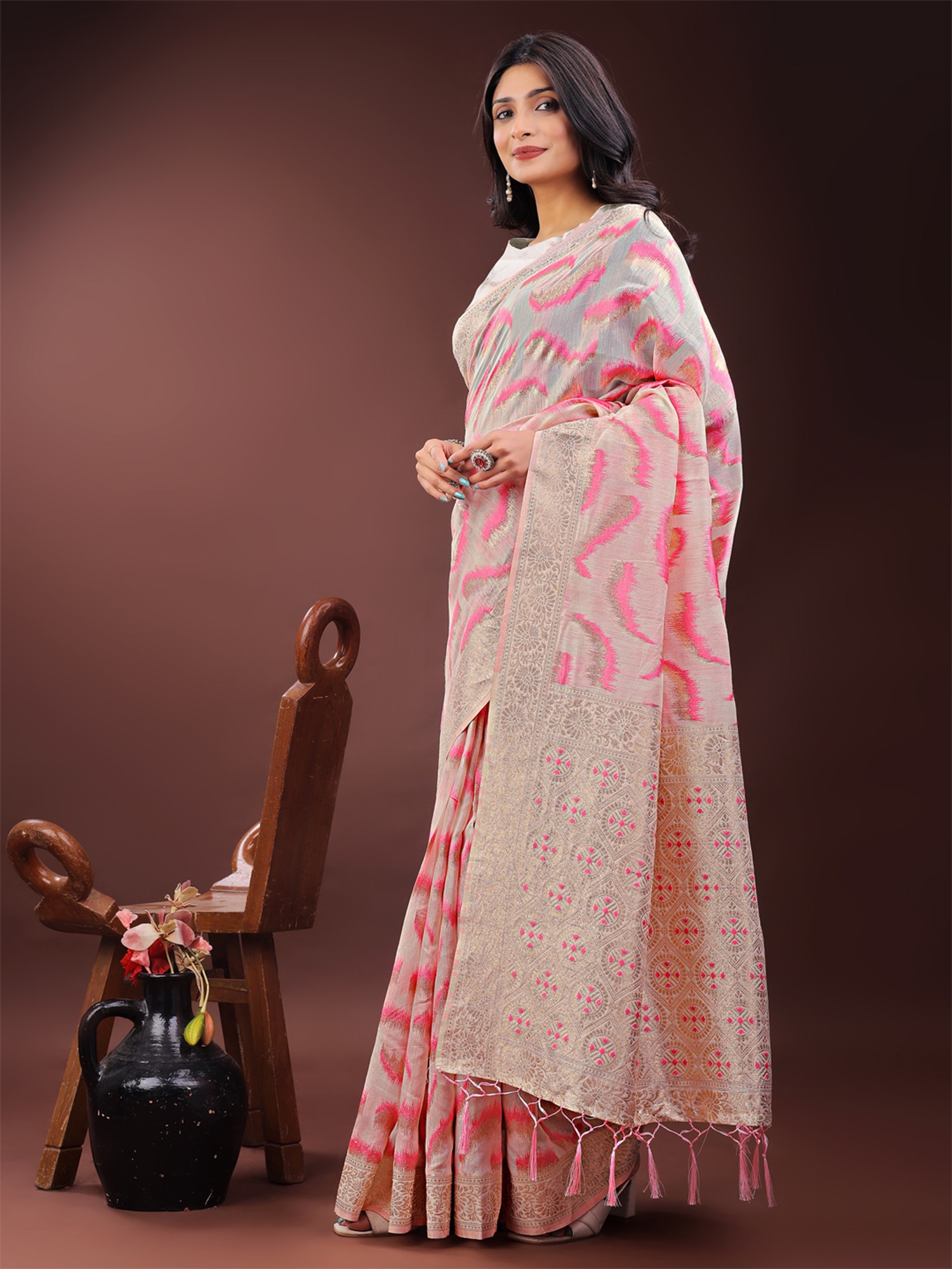Linen Cotton Weaving Work Attractive Wedding Wear Saree With Rich Tassels Pallu
