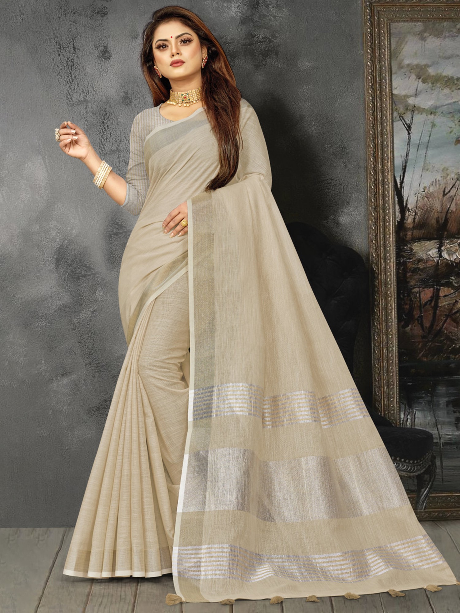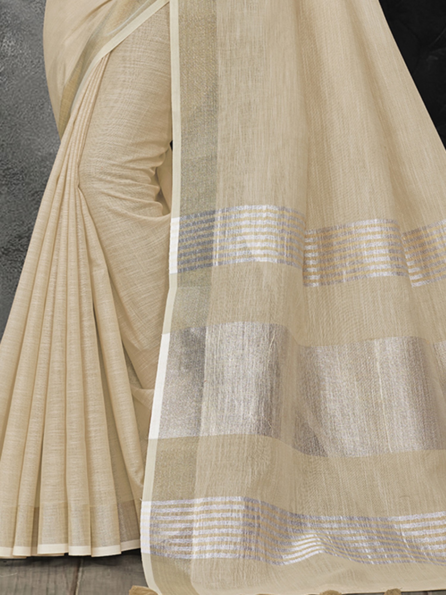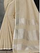 Each stripe, which stands for poise and elegance, relates a tale of excellent artistry, while the Latkan Pallu lends a whimsical touch. This saree is a perfect choice for any occasion, exuding charm and adaptability and making you seem effortlessly elegant wherever you go. With this linen saree, you can improve your look and enjoy the spirit of classic beauty.