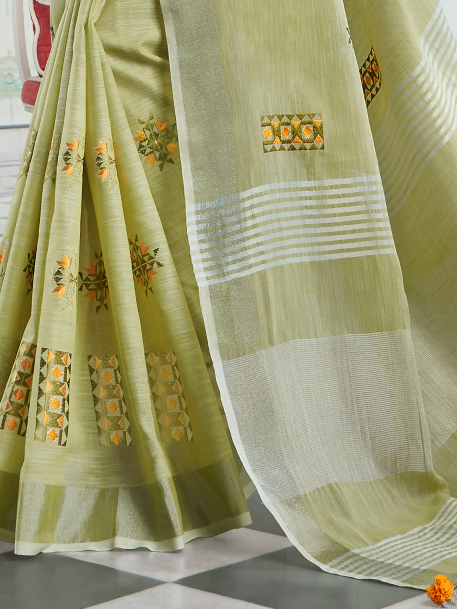 Graceful Woven Geometric Pattern Saree In Soft Linen Ideal For Office Wear Festive Occasions For Women