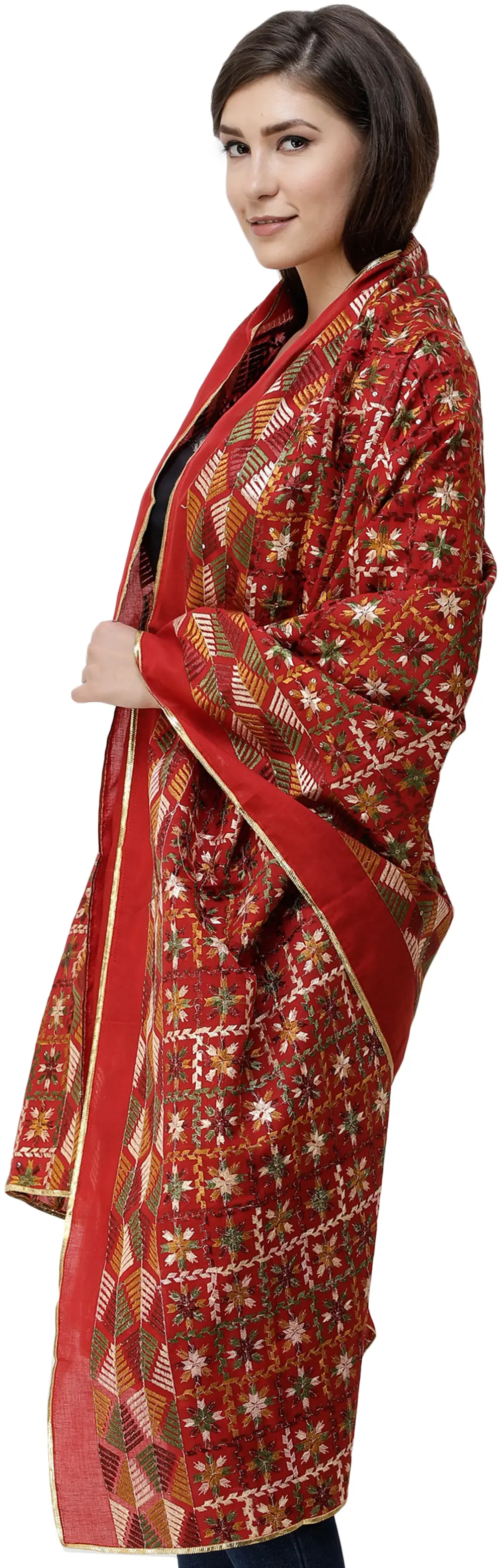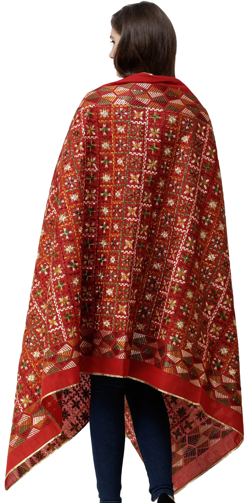 Phulkari Hand-Embroidered Dupatta from Punjab