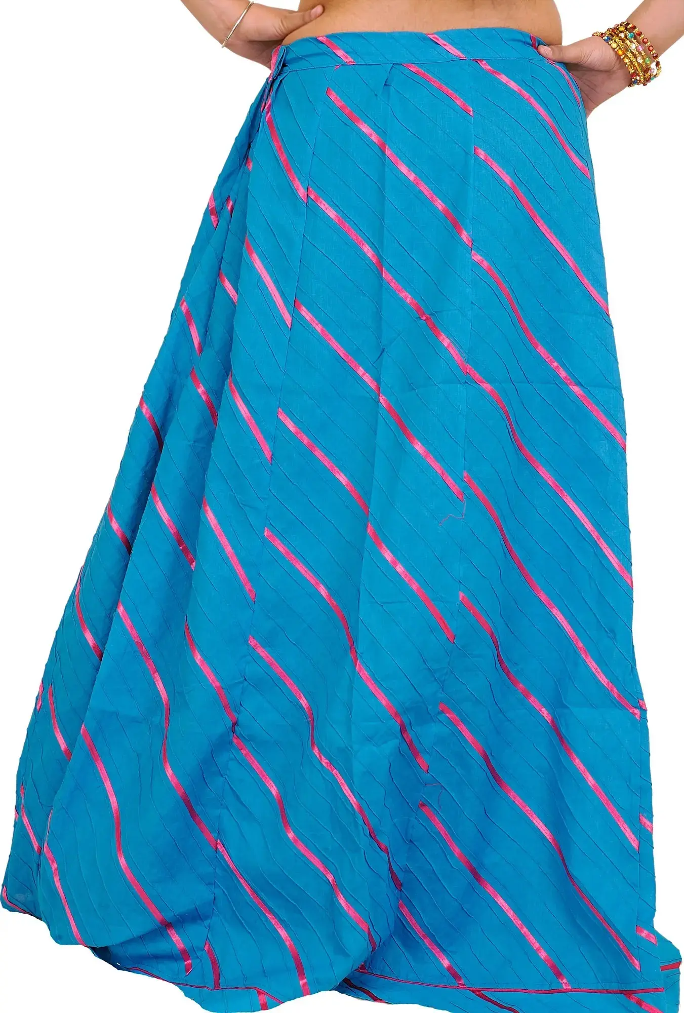 This “Long Ghagra Anchor Skirt” with stitched ribbons is a stunning blend of traditional and modern style. It is more than simply a skirt made of pure cotton; it is a statement of grace and cultural depth. The delicate stitching and flowing form provide a feeling of magic, while the ribbons offer a playful touch of whimsy.