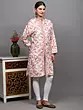 Ecru-Olive Pure Wool Long Jacket from Kashmir with Paisleys Aari Hand-Embroidery on Border