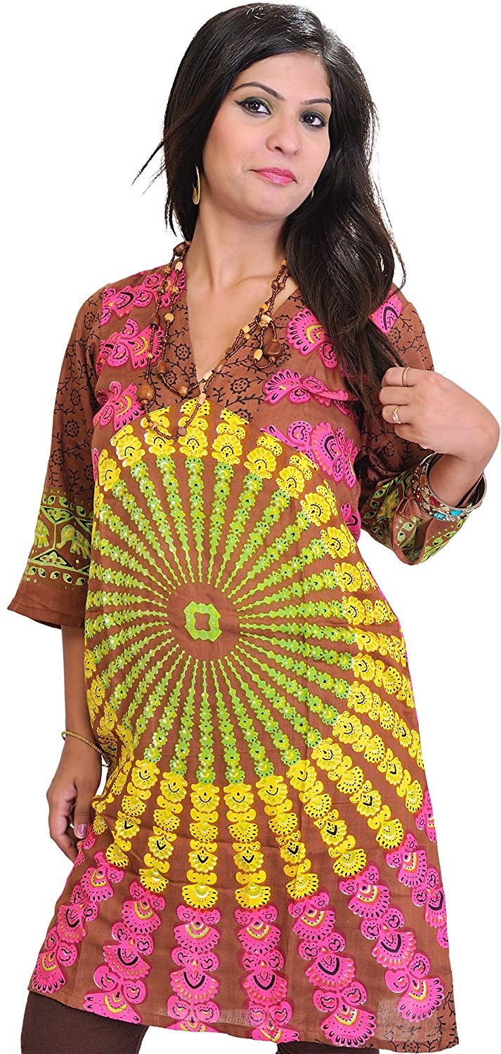 This “Long Kurti from Pilkhuwa,” embellished with detailed Printed Chakras, has an ethereal beauty. Crafted from premium cotton, this beautiful creation merges comfort with style. Its flowing silhouette exudes grace, while the mesmerising Chakra prints signify harmony, balance, and inner peace, promoting balance and attention throughout the day. Perfect for both casual excursions and special occasions, this Kurti combines adaptability and chicness. Elevate your wardrobe with this Kurti that celebrates tradition while oozing contemporary flair.