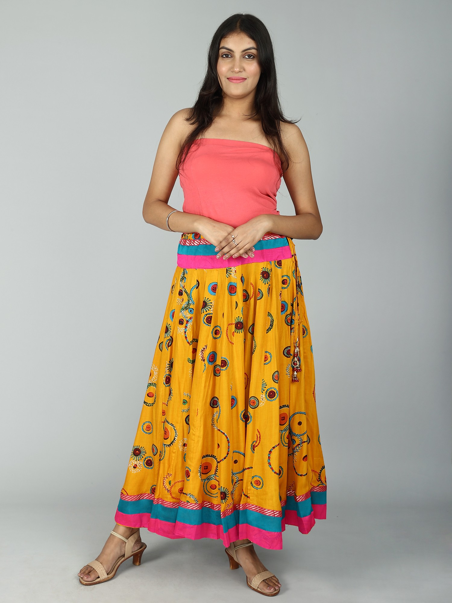 Step into a world of vibrant spirituality with the Long Skirt featuring Digital Printed Circles and a Striped Patch Border from ISKCON Vrindavan by BLISS. This skirt captures the essence of divine aesthetics with its intricate digital print depicting circles, creating a visually appealing pattern. The striped patch border adds a touch of traditional charm and completes the overall design. Embrace a fusion of contemporary style and spiritual elegance with this Long Skirt, a piece that not only reflects fashion but also carries the essence of divine inspiration from ISKCON Vrindavan by BLISS.