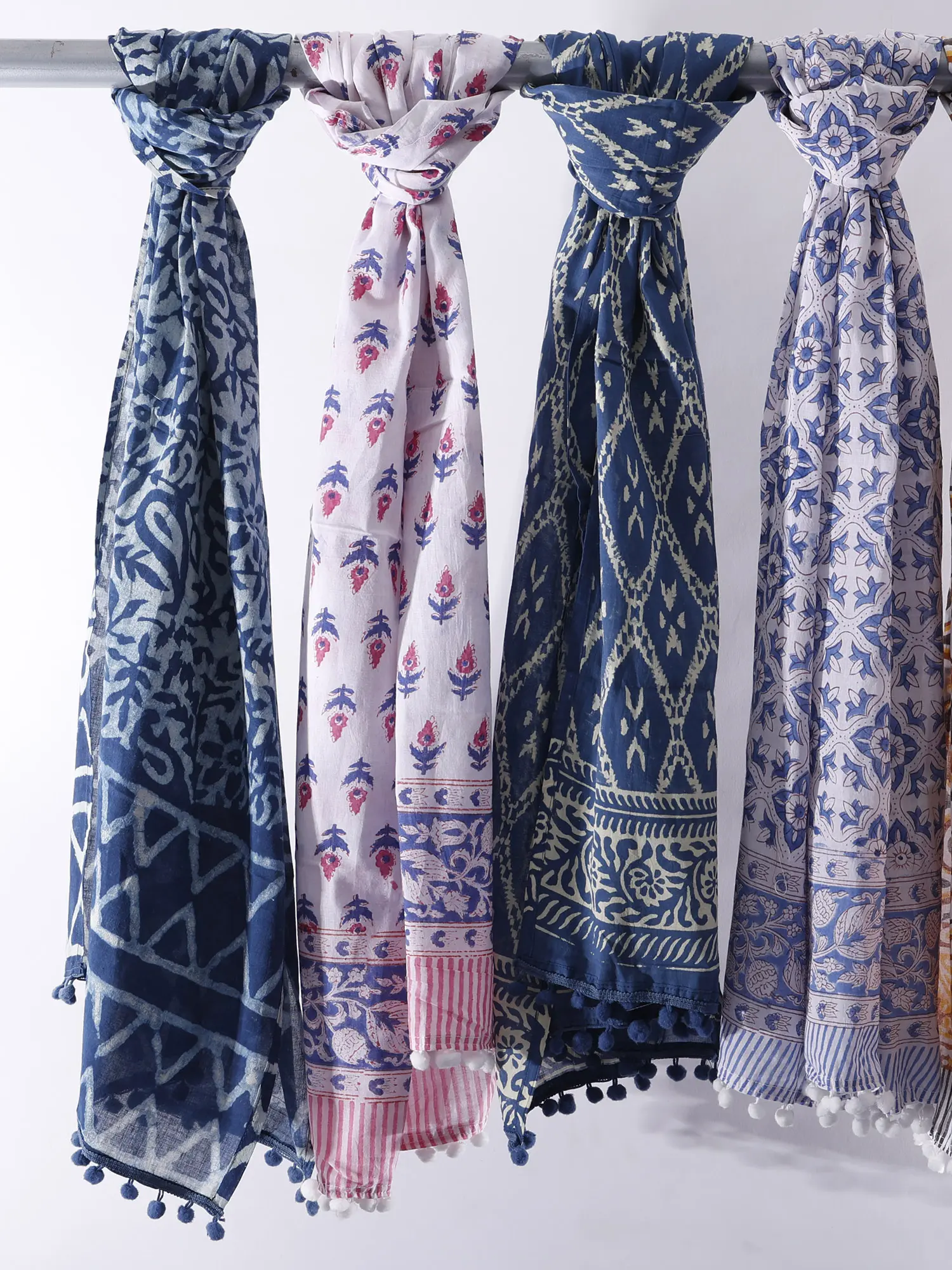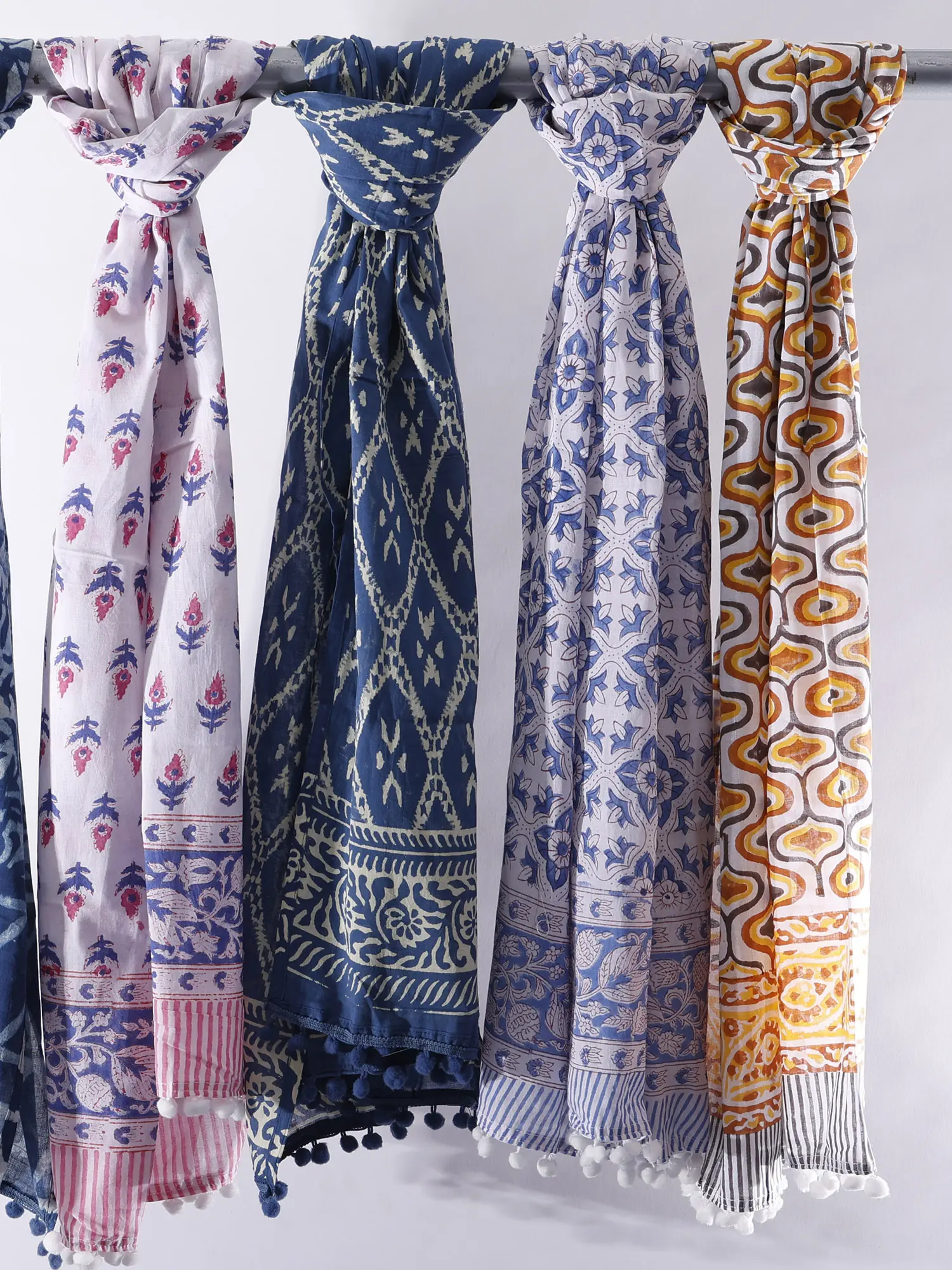 Block-Printed Lot of Five Pure Cotton Scarves from Jaipur