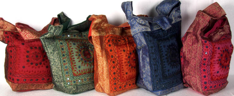 Lot of Five Hand Bags from Kutch with Embroidered Mirrors