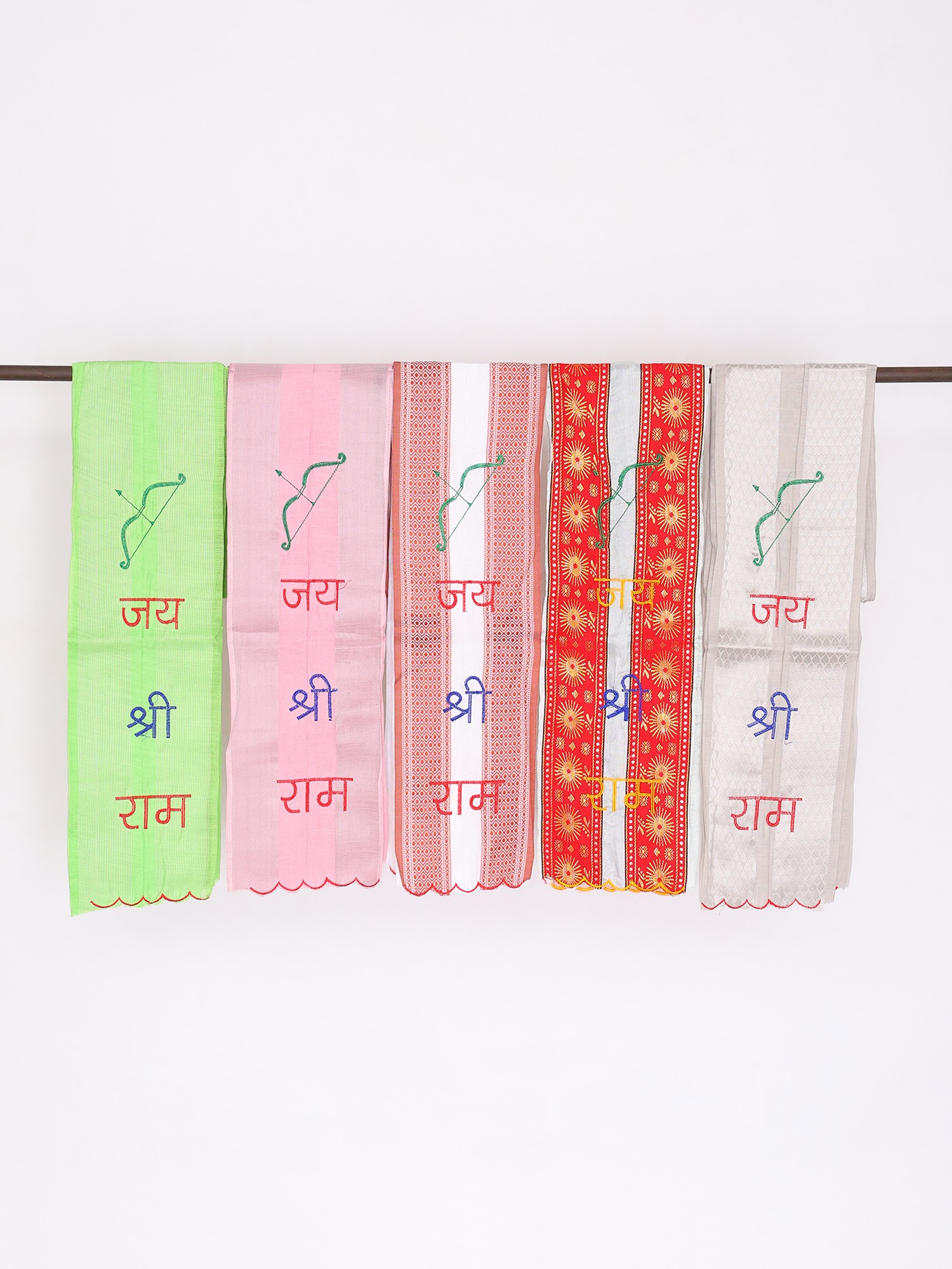 Lot of Five Jai Shree Ram Embroidered Hindu Prayer Scarf