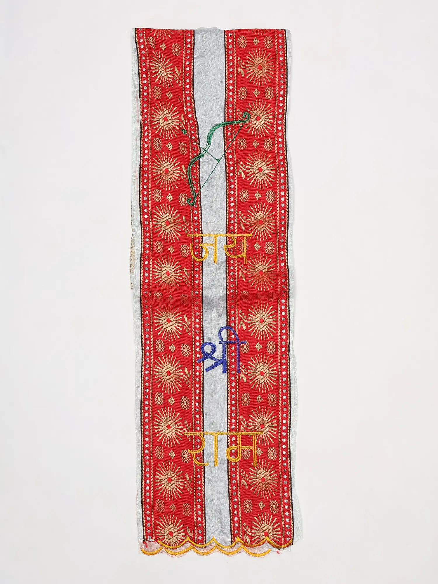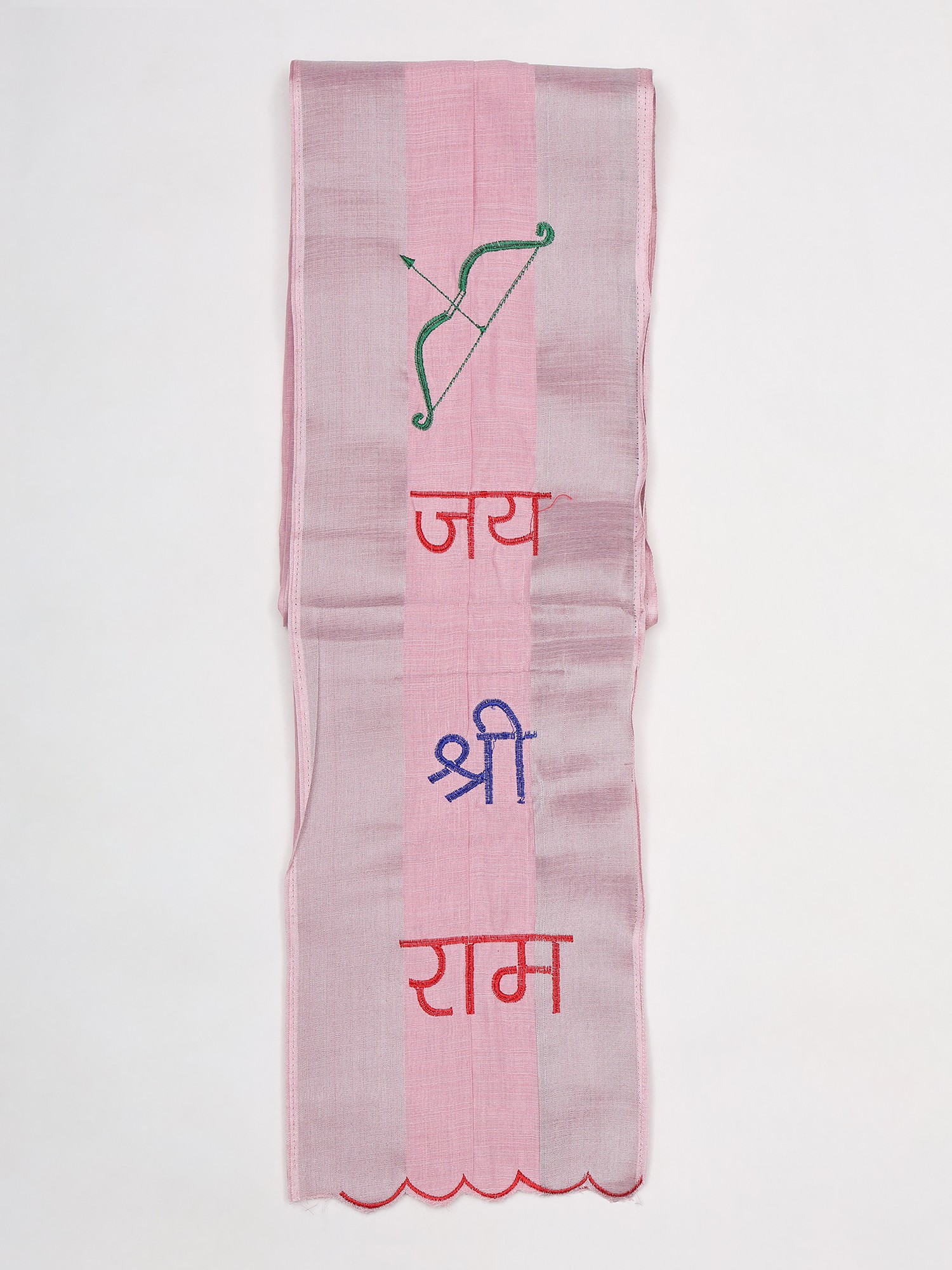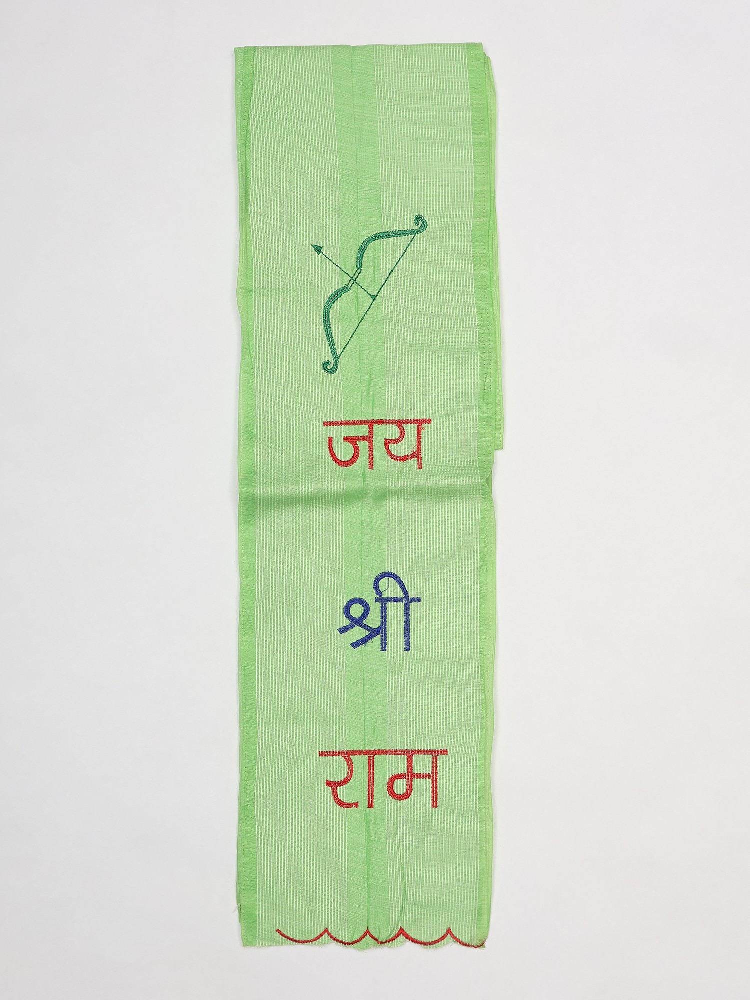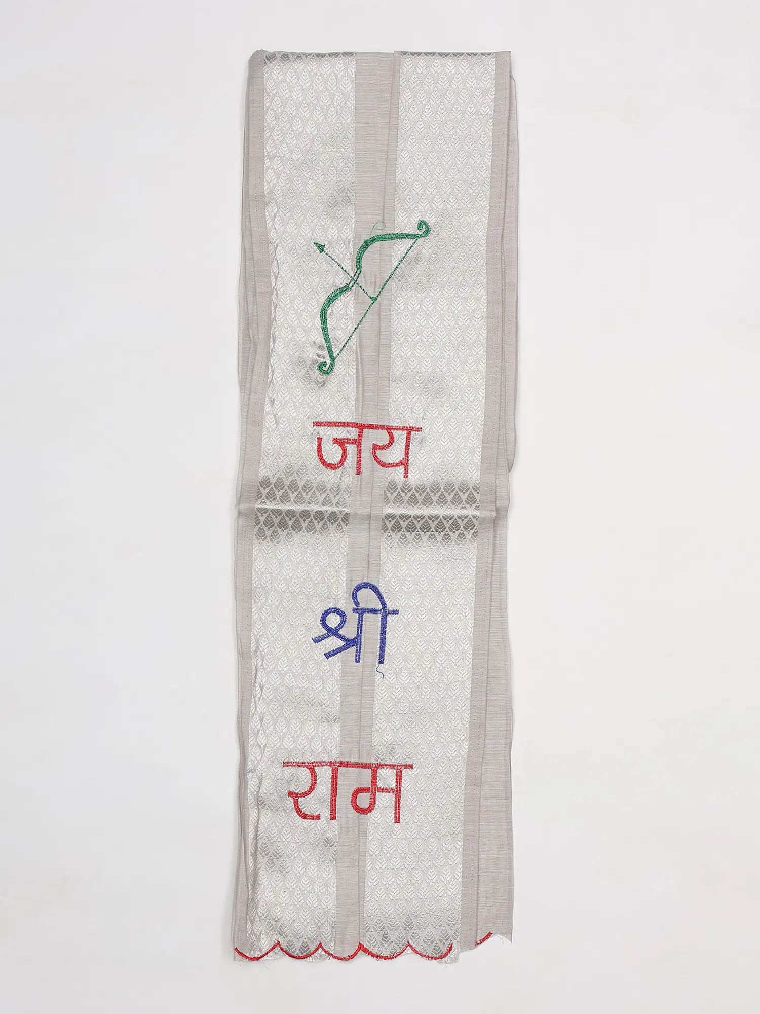 Crafted from lustrous Art Silk, each scarf embodies a dedication to quality and tradition. The fine threads are meticulously embroidered with the auspicious mantra "Jai Shree Ram" and the iconic imagery of Lord Rama's bow, a symbol of righteous strength and divine protection. The careful stitching ensures each detail is rendered with precision, reflecting a commitment to enduring beauty and spiritual significance.