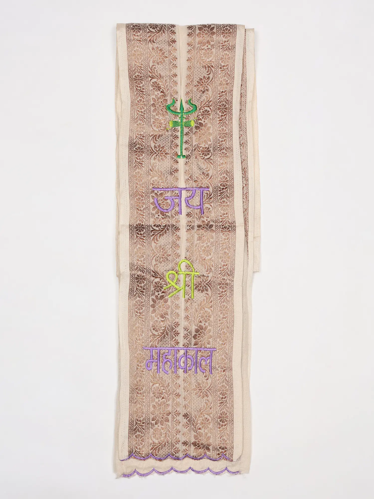 Lot of Five Religious Jai Shree Mahakal Scarf with Thread Embroidery