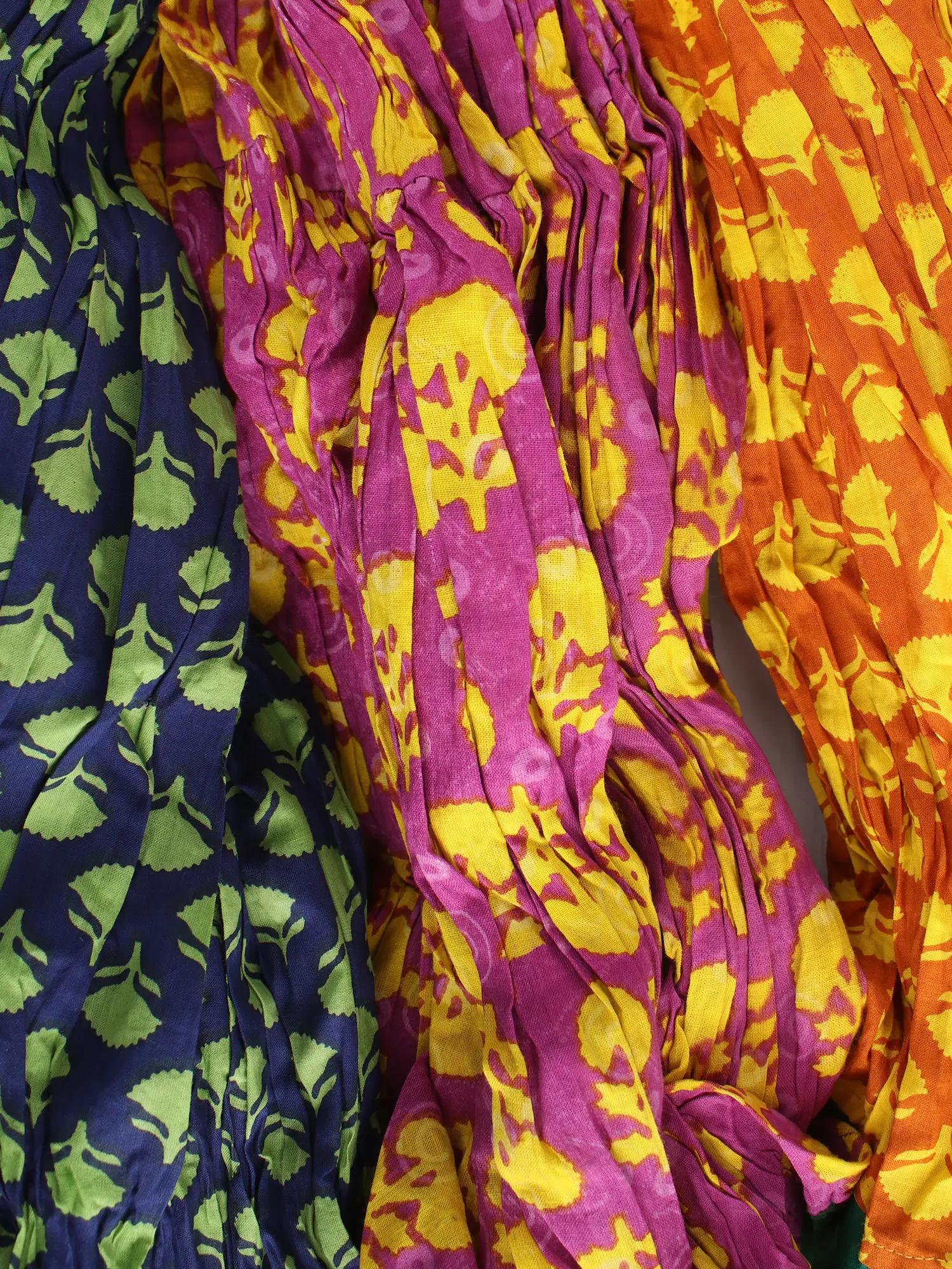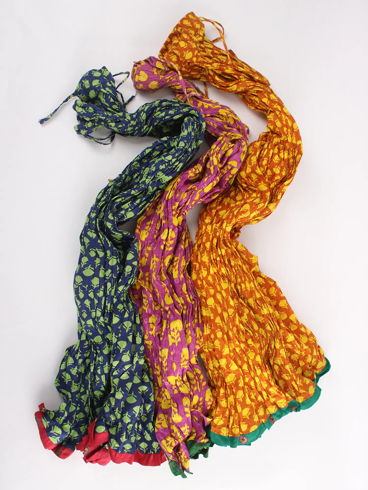 Lot of Three Crushed Ghagra Skirts Block-Printed with Vegetable Dyes and Patch Border