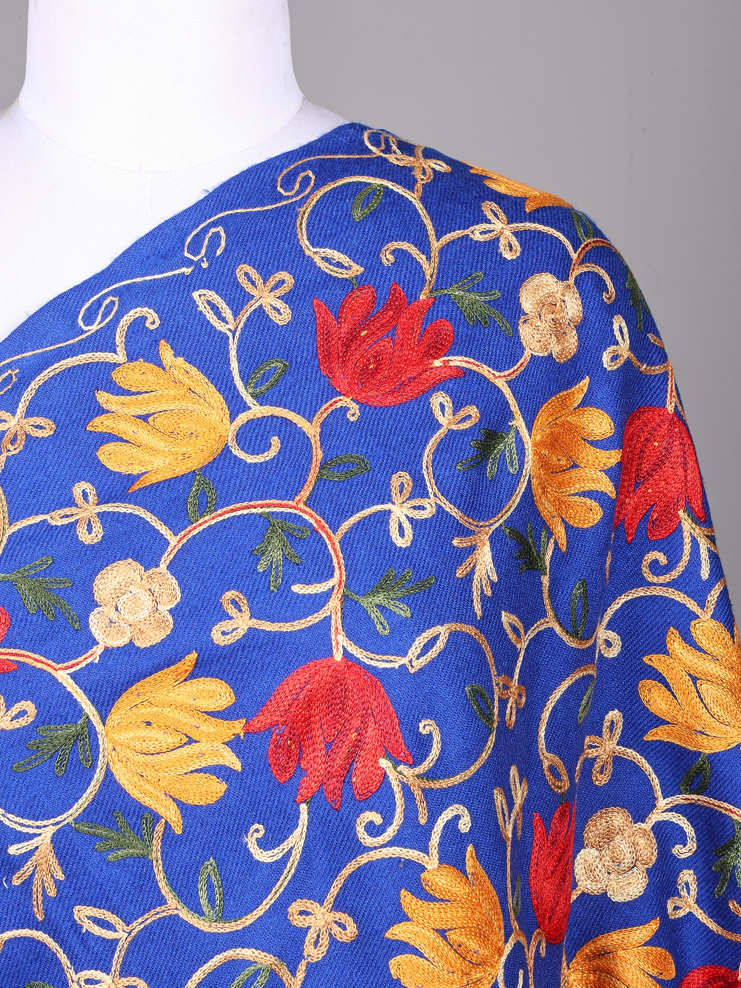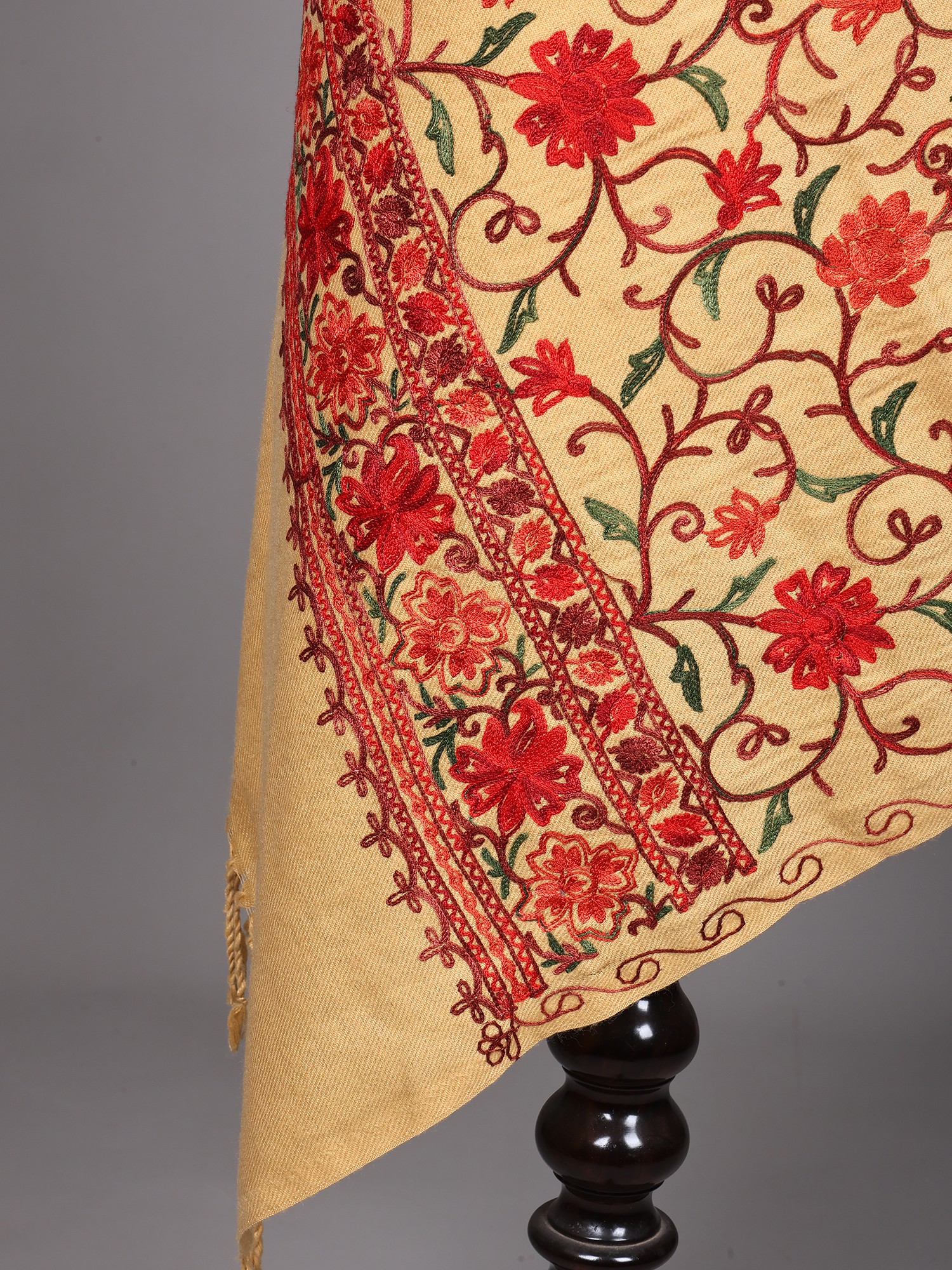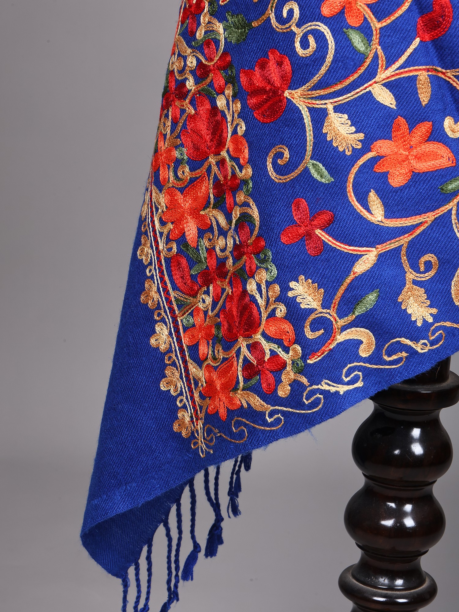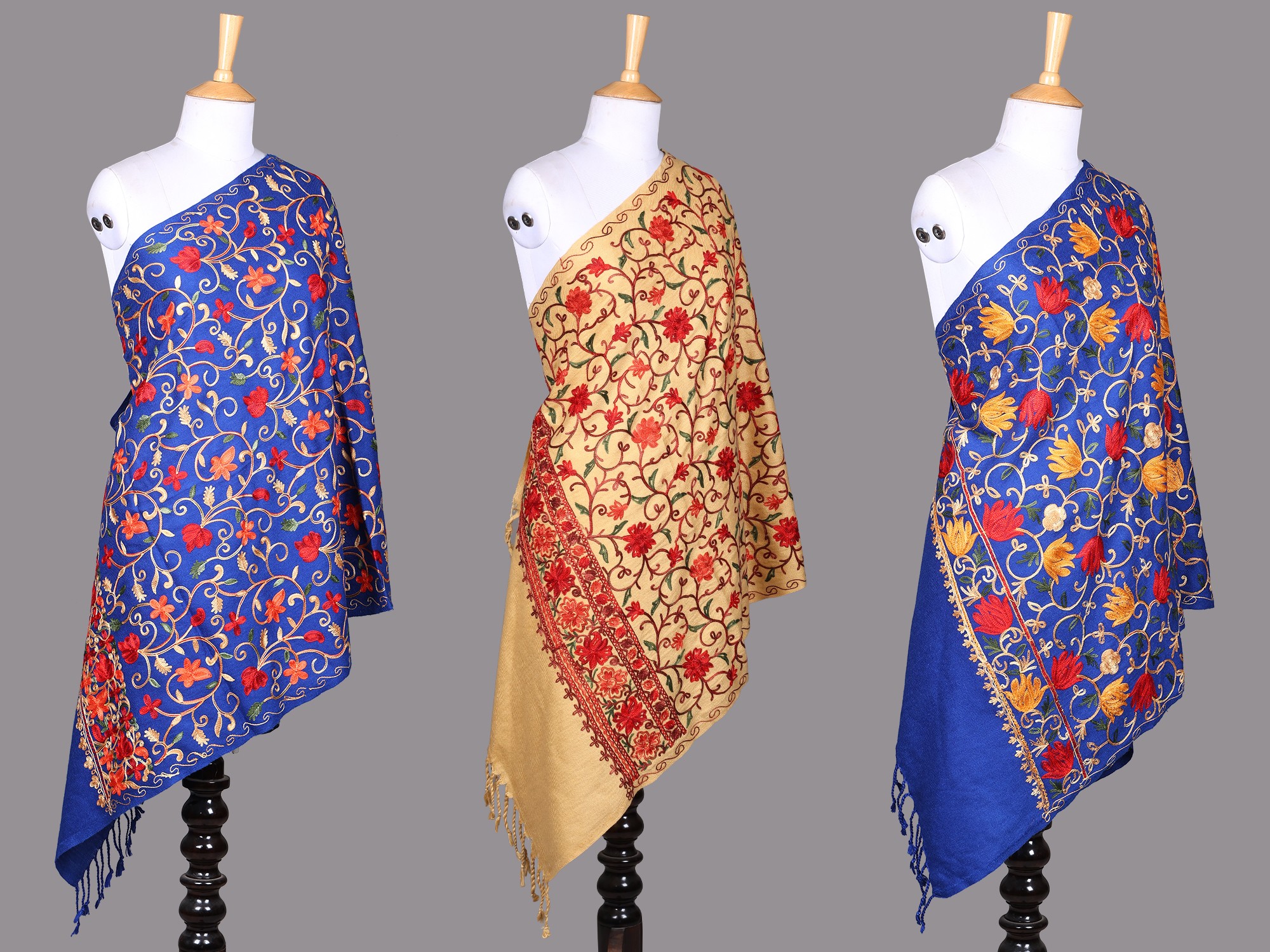 Lot of Three Wool Stole with Aari Embroidered Floral Vines from Amritsar