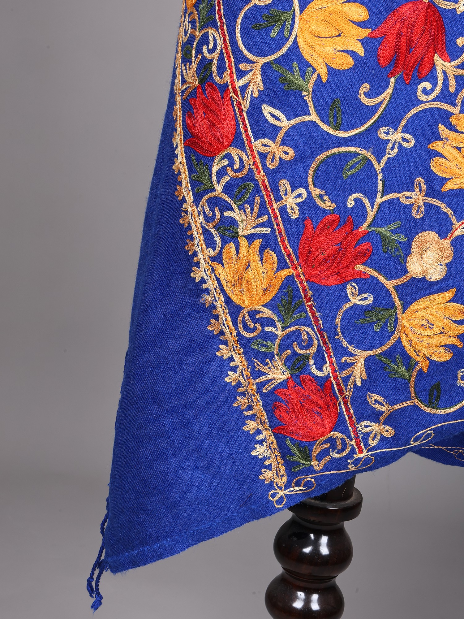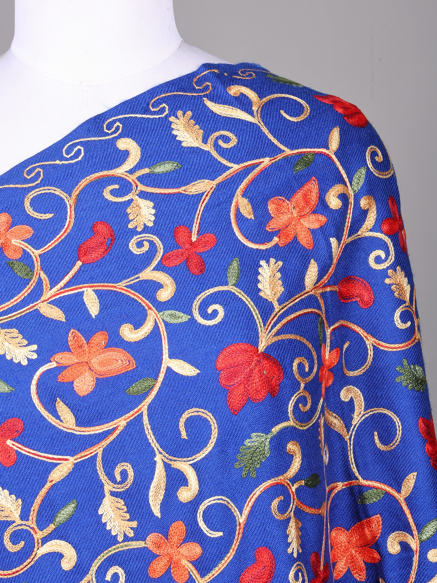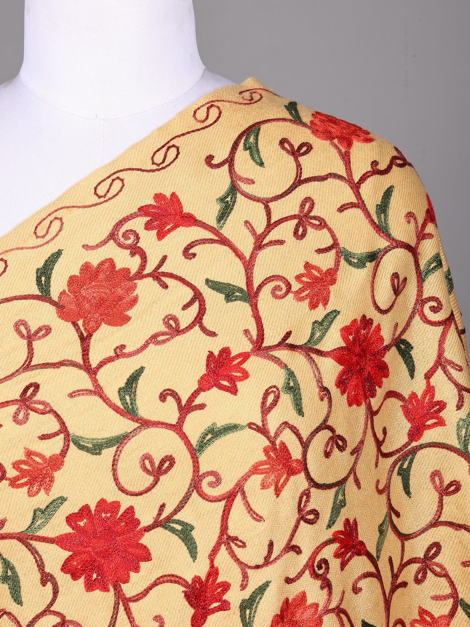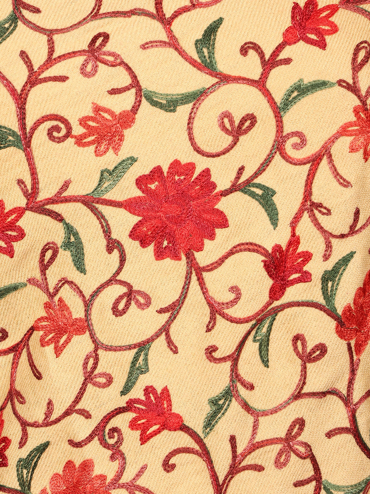 Lot of Three Wool Stole with Aari Embroidered Floral Vines from Amritsar