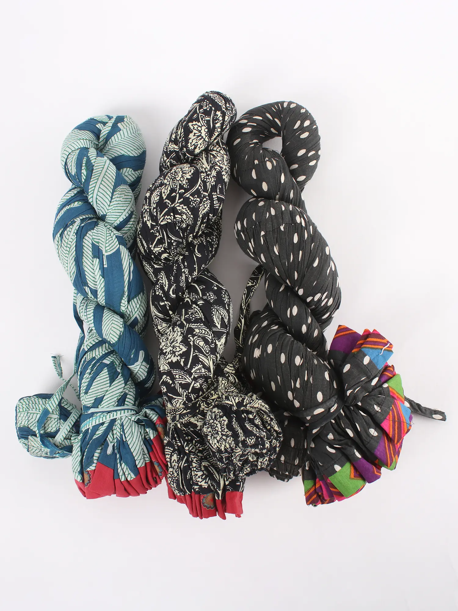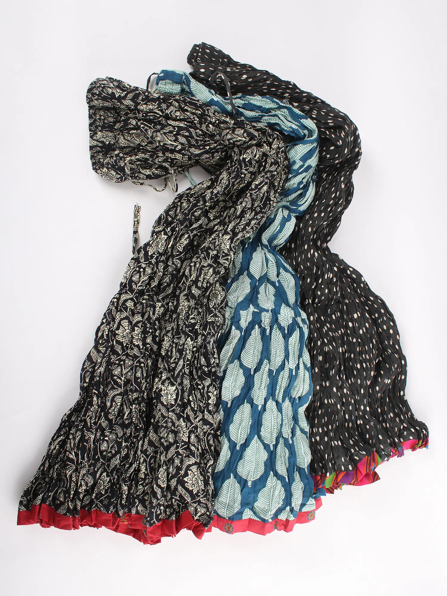 Lot of Three Crushed Ghagra Skirts Block-Printed with Vegetable Dyes and Patch Border