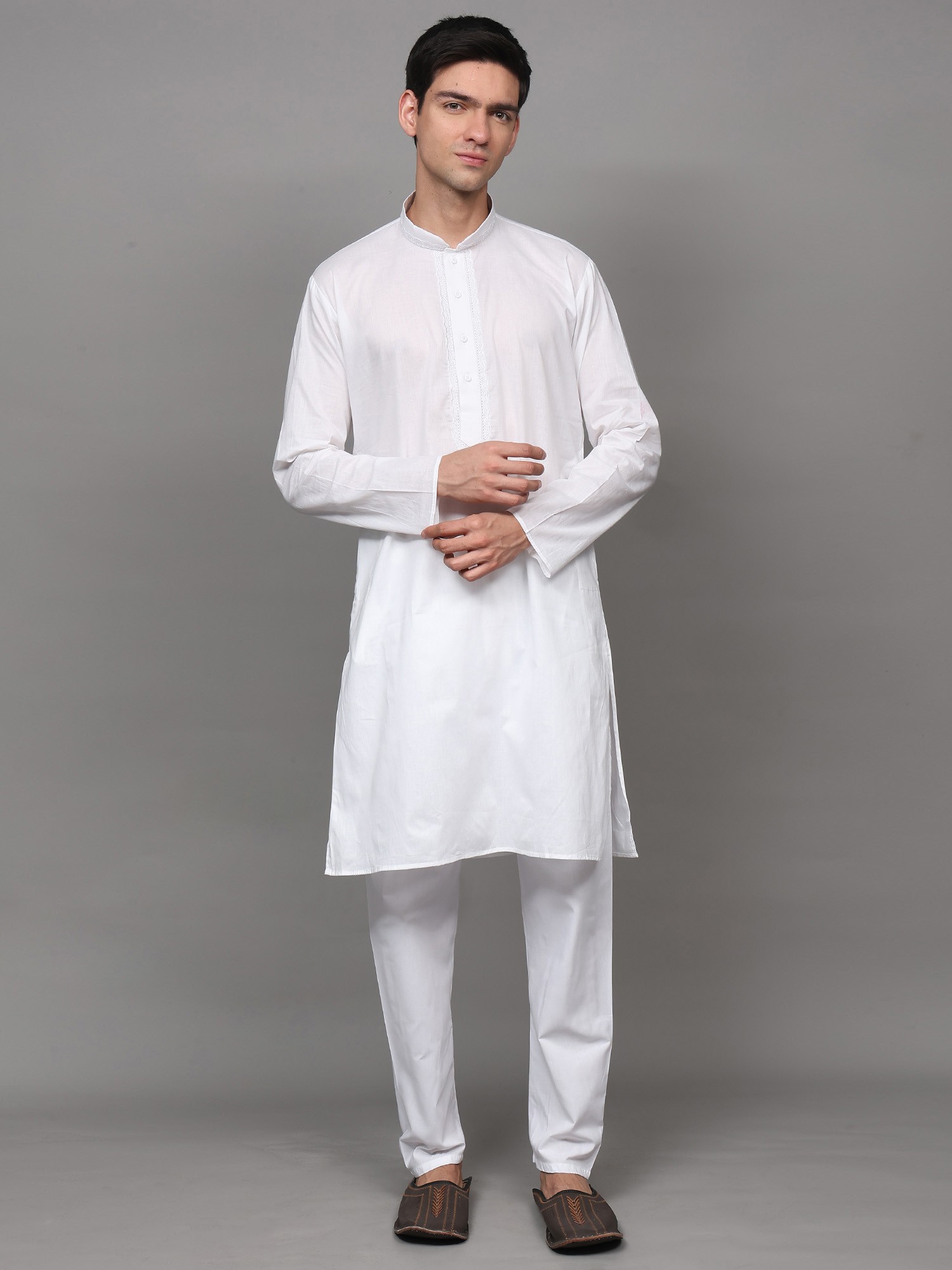 Plain Pathani Kurta Pajama Set with Side Pockets