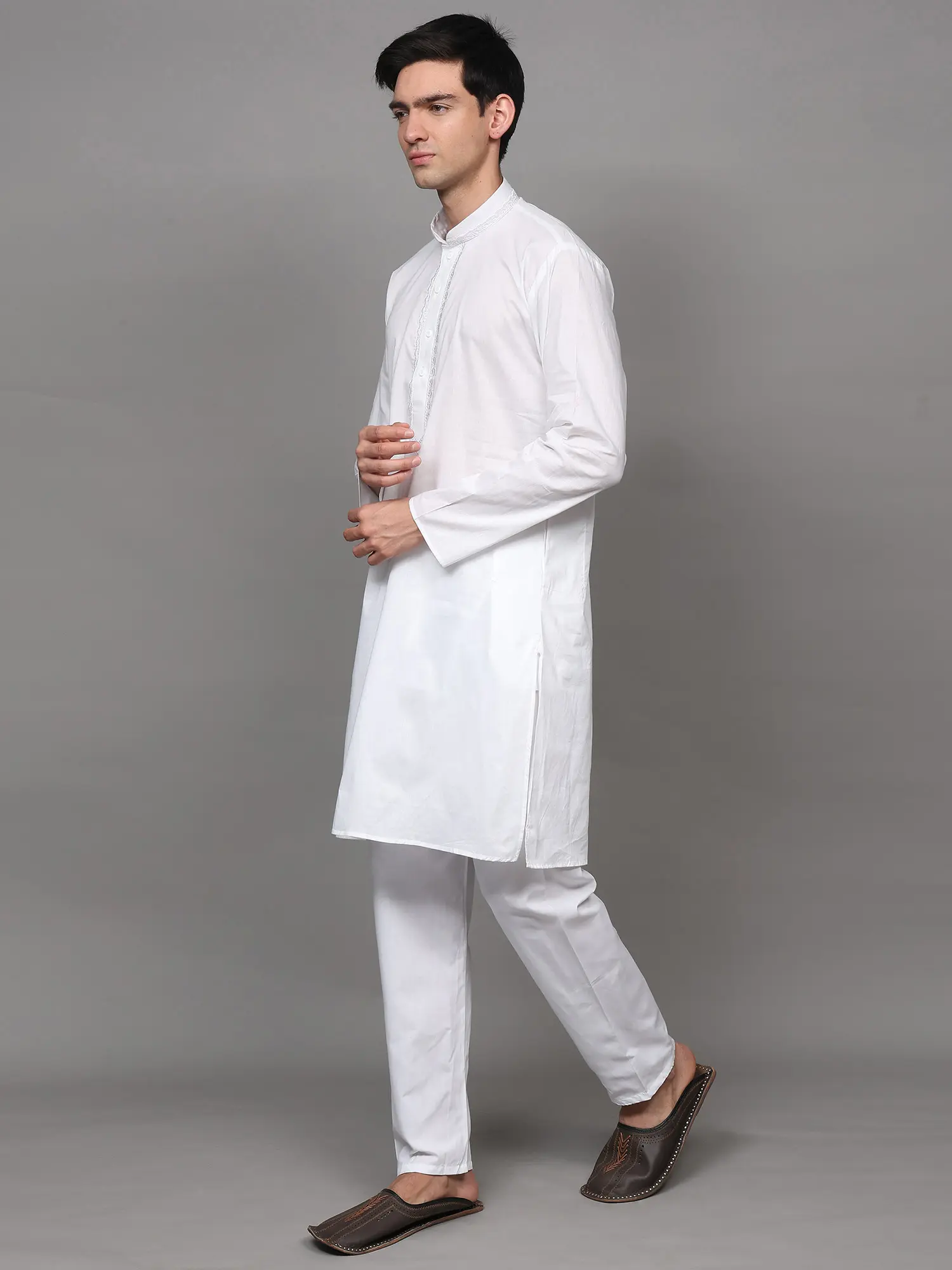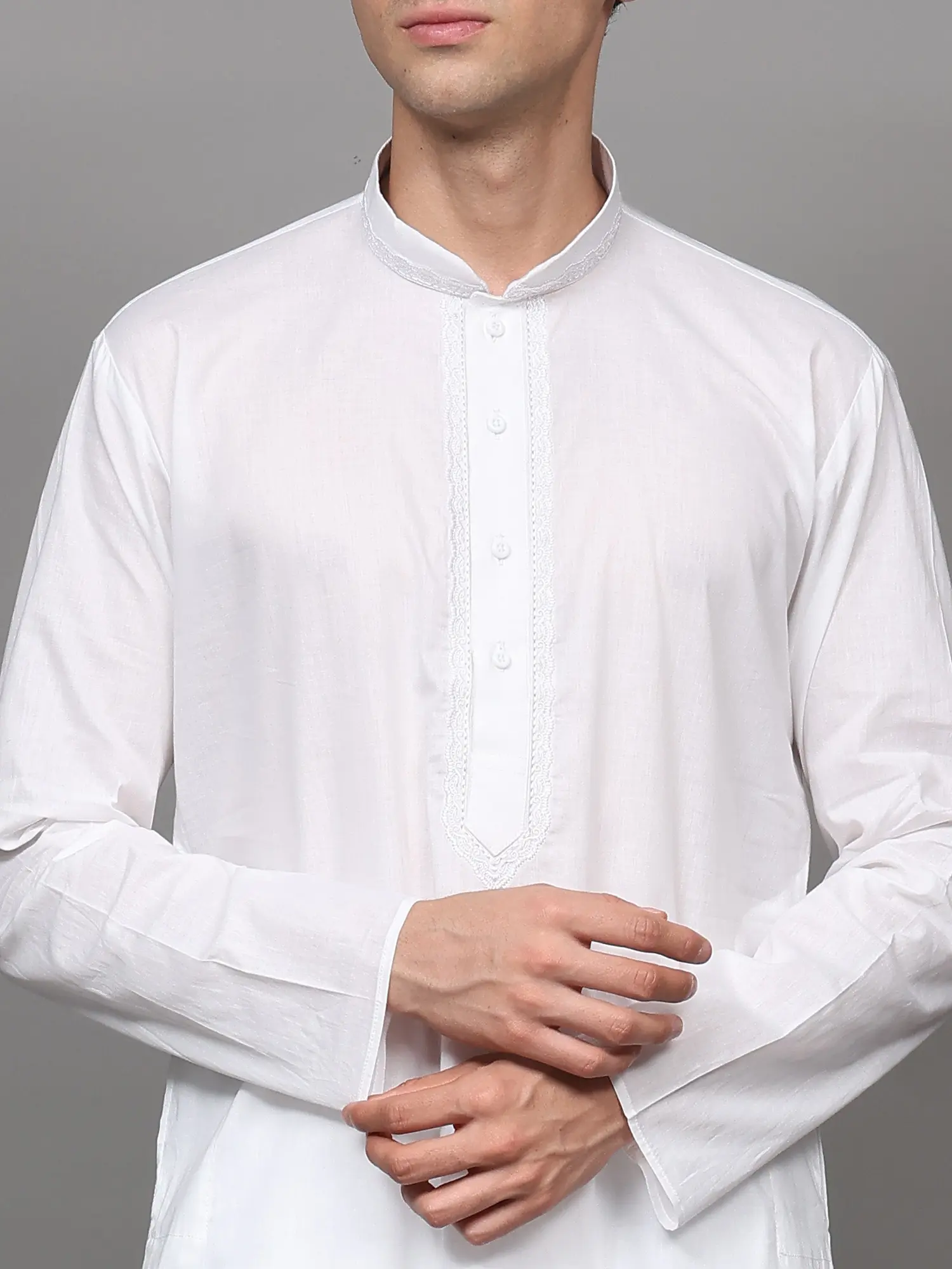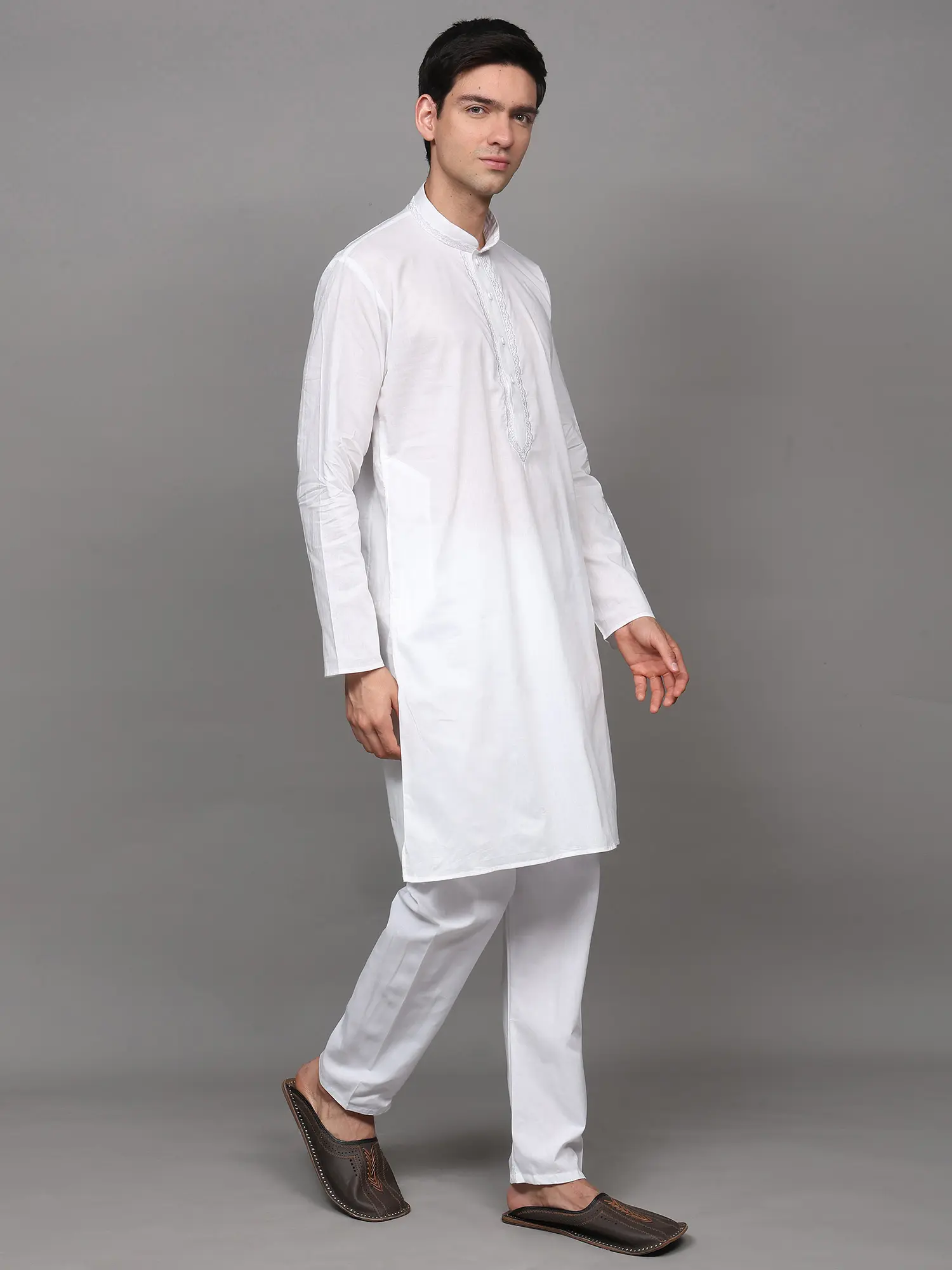 Plain Casual Kurta Pajama Set with Thread-Embroidery on Neck