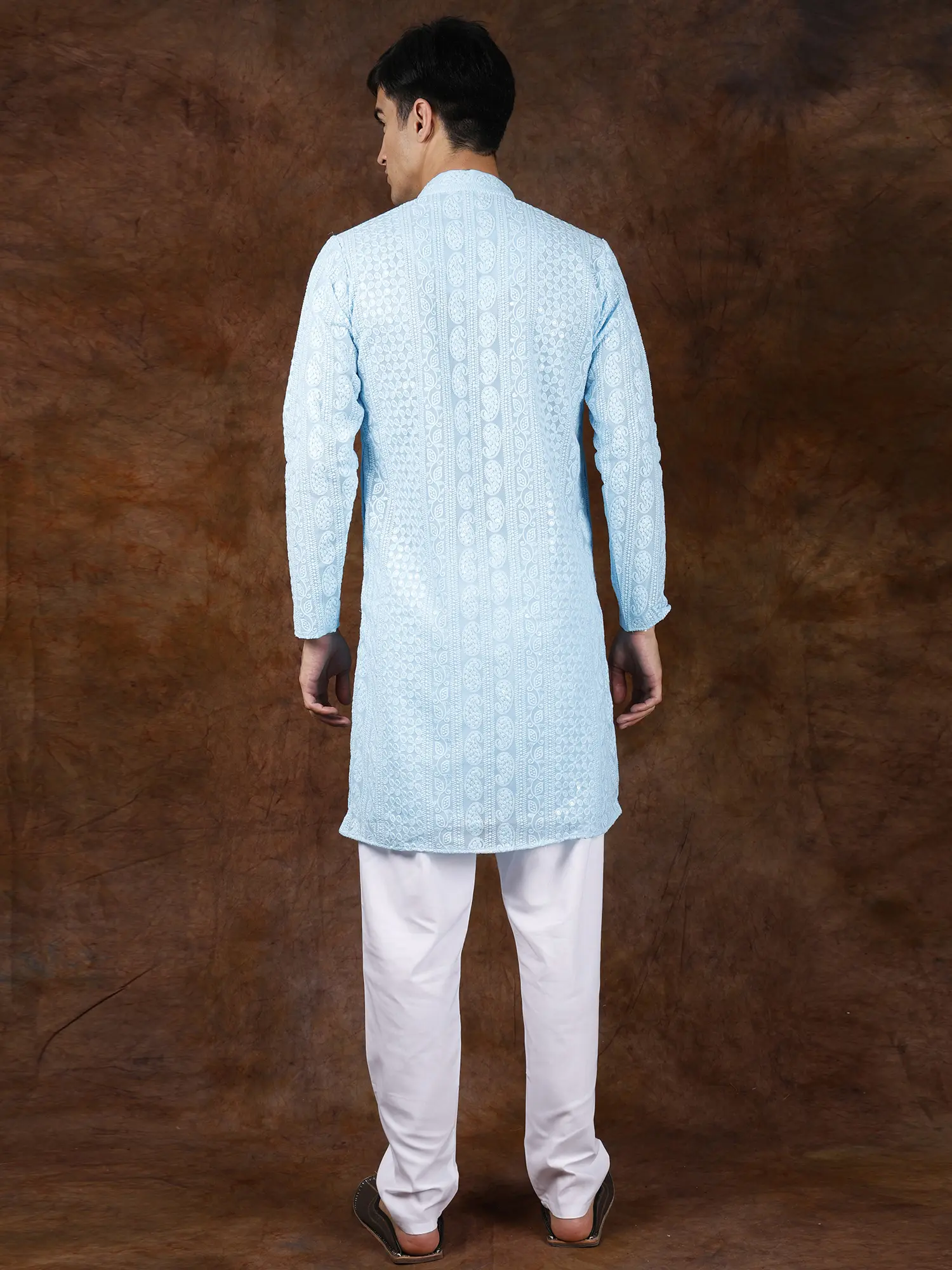 Seafoam-Green Lukhnavi Chikankari Embroidered Kurta Pajama with Sequin Work
