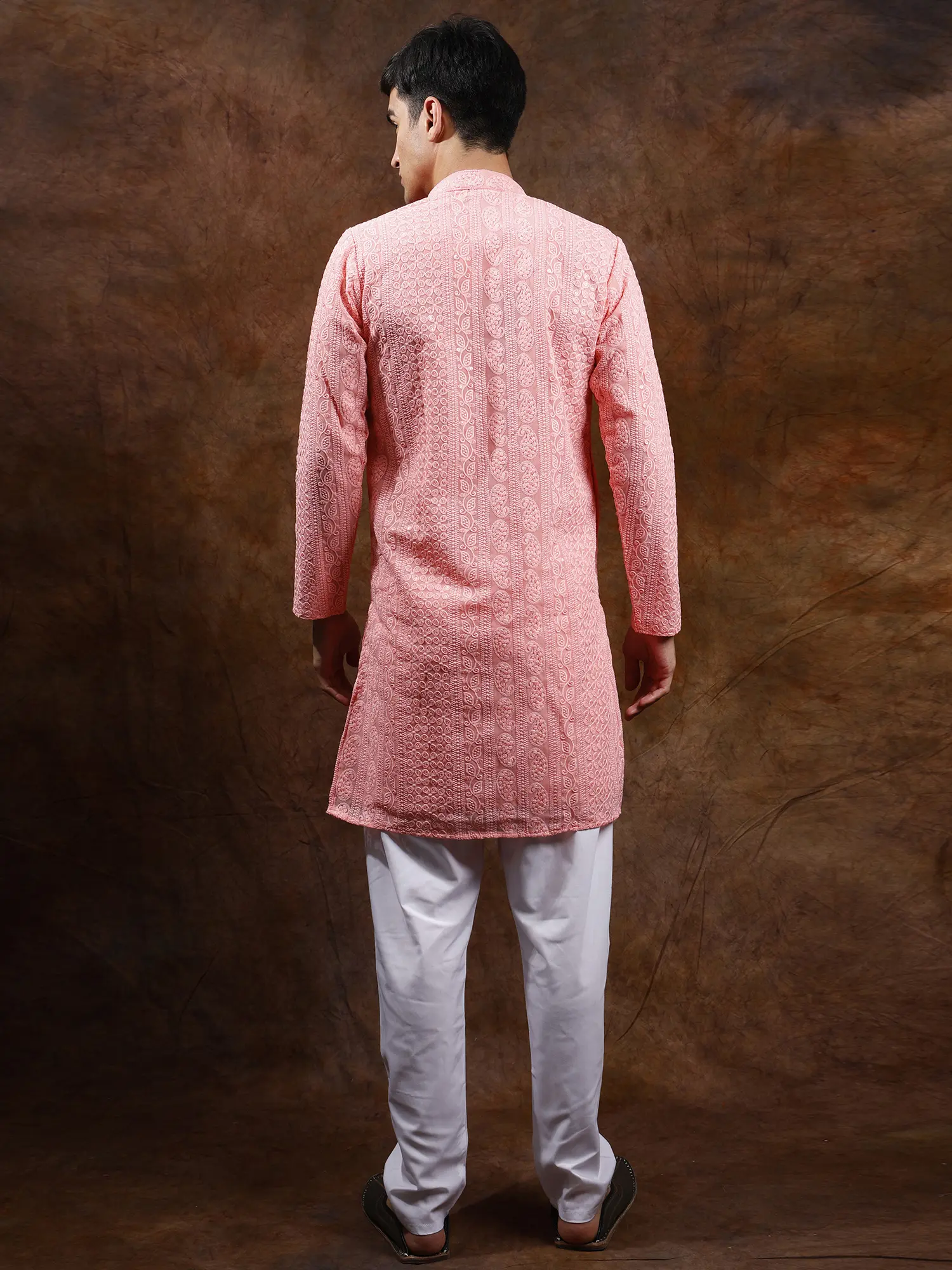 Kurti with Lukhnawi Chikan Embroidered Flowers and Sequins