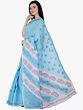 Rubocondo Lukhnavi Chikan Sari with Floral Hand-Embroidery All-over