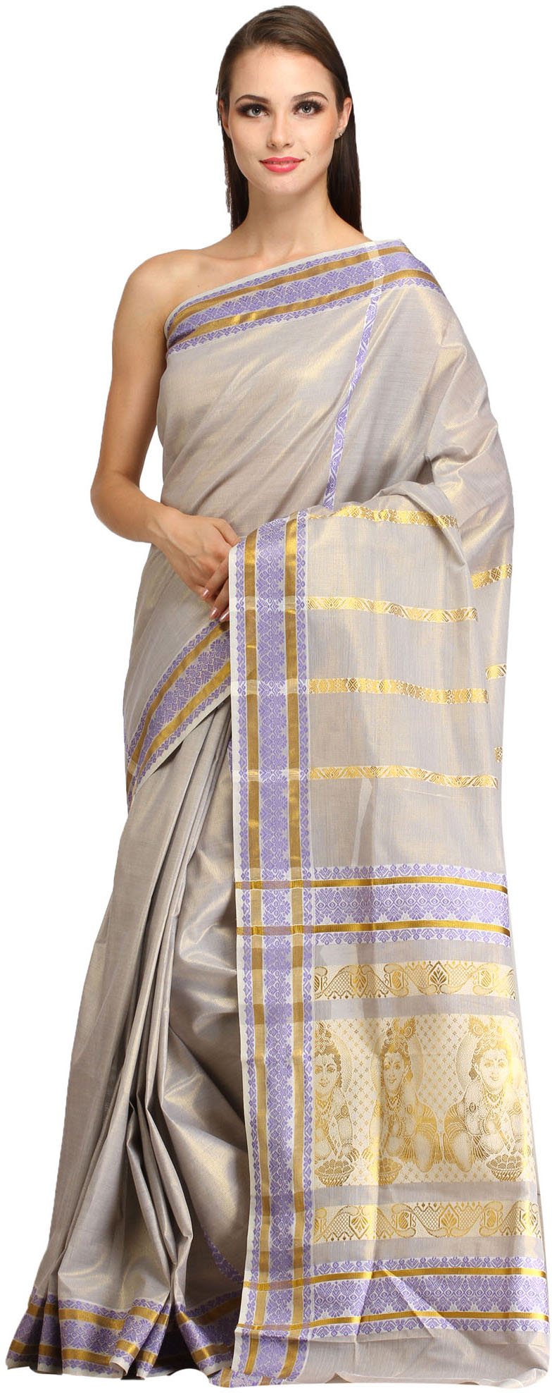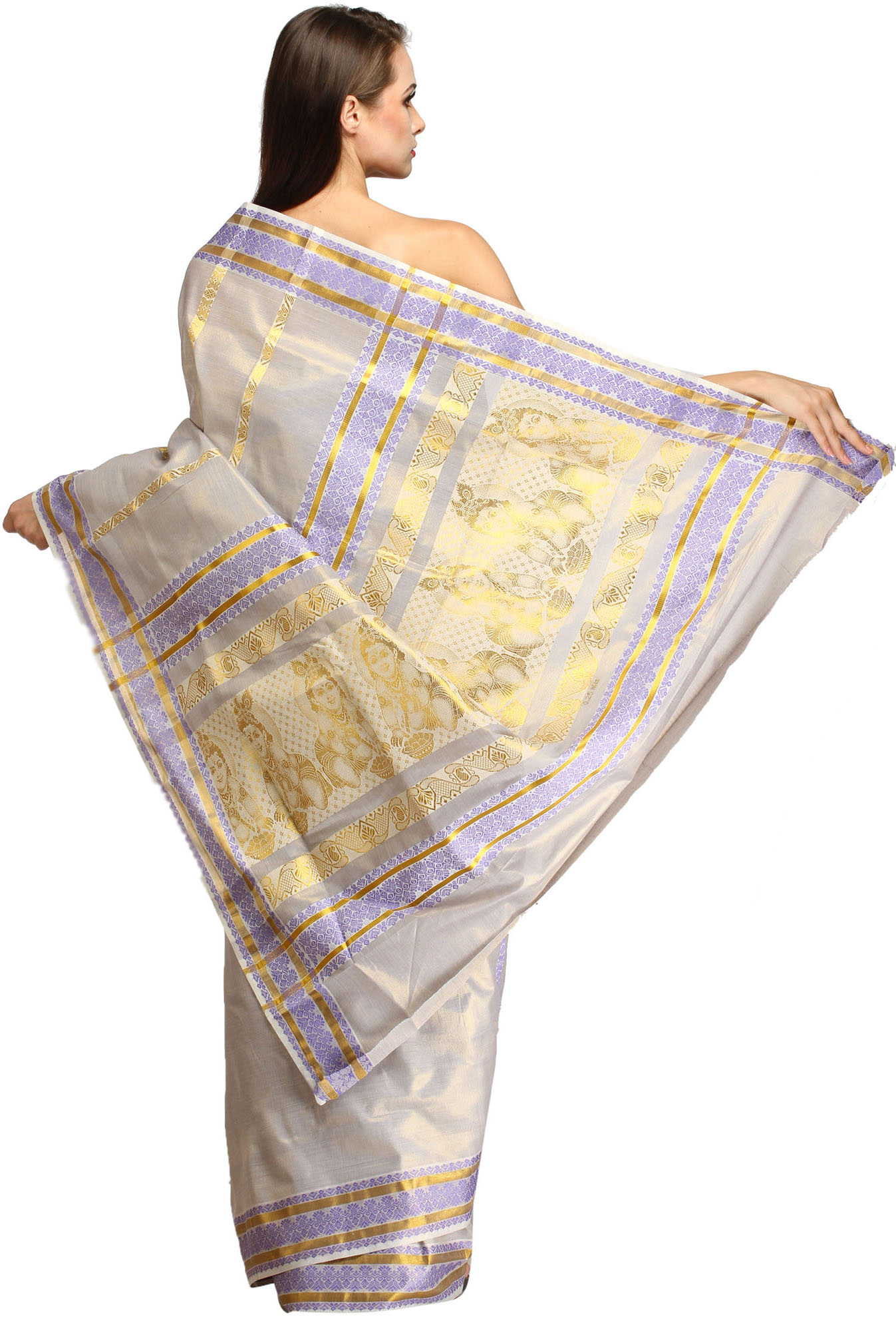 Dushyant-Shakuntala and Radha Krishna (Green-Lake Baluchari Love Sari)