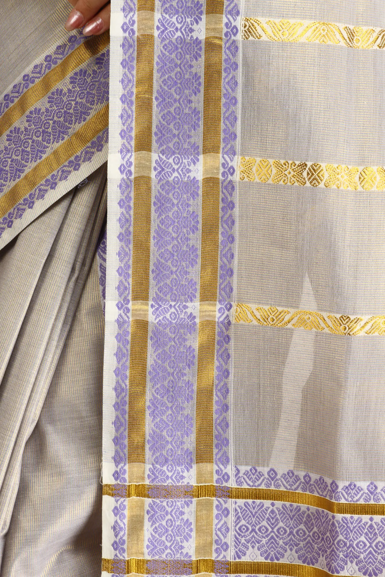 Cream Dupatta with Tri-Color Woven Stripes on Border