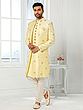 Embroidered Art Silk Three Piece Indo Jacket Set With Aligarhi Pant Offers A Luxurious Ethnic Look For Wedding