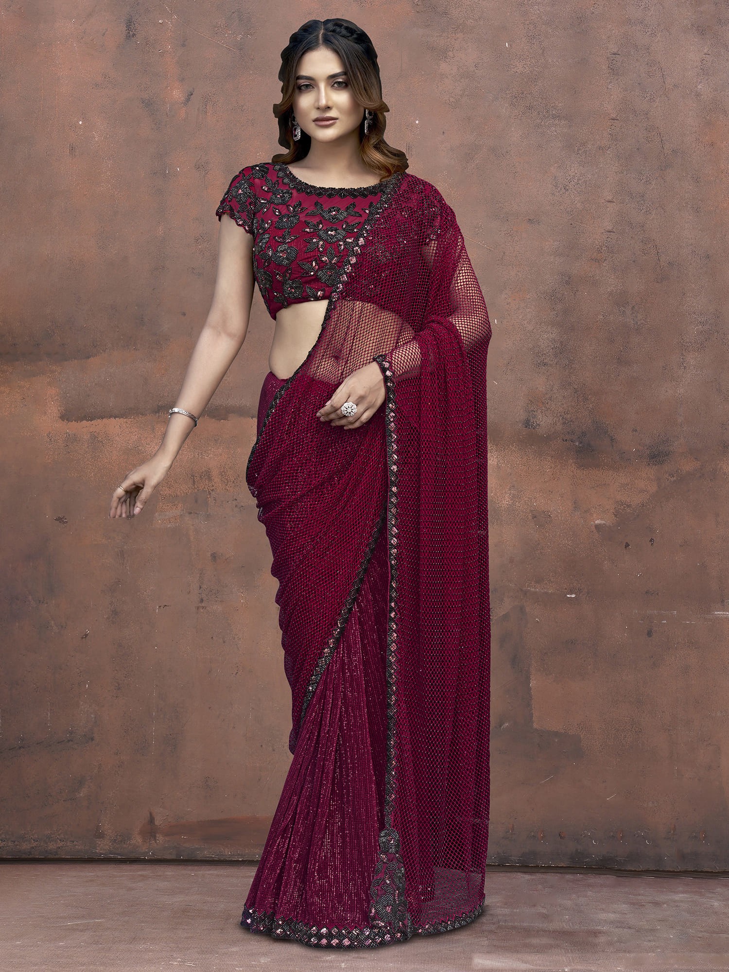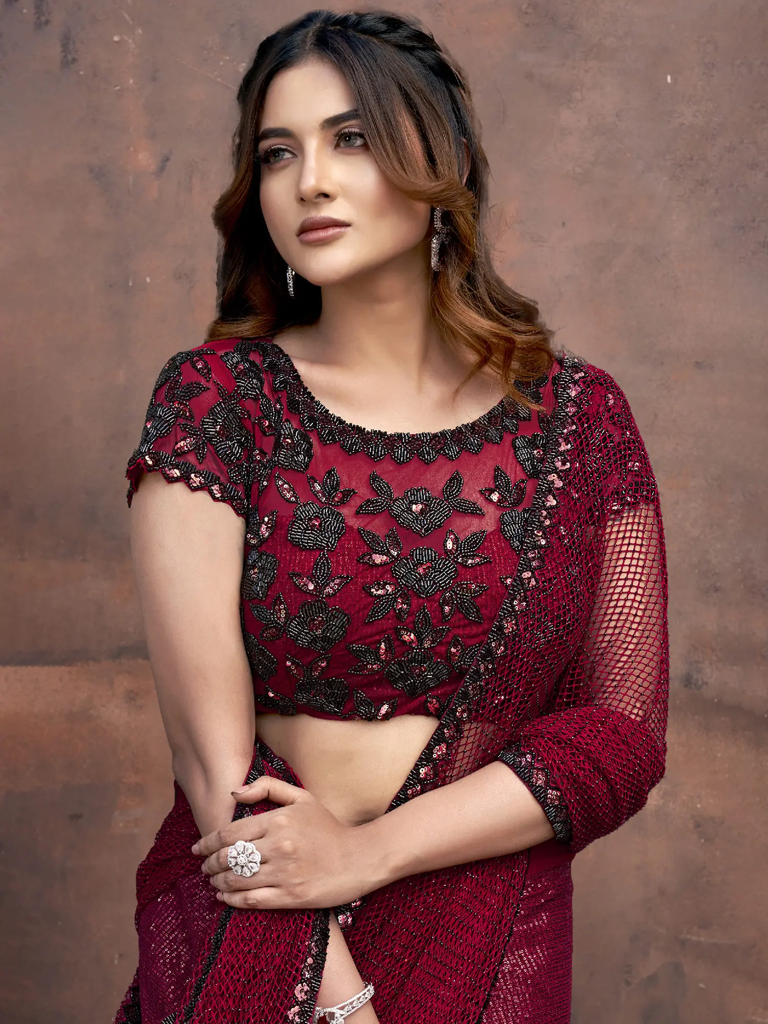 Luxurious Armani Tulle Saree With Stones Adorned In Pure Beads Handwork And Sequins Perfect Designer Partywear For Weddings