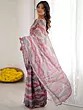Luxurious Malai Crepe Silk Saree With Exclusive Designer Printed Leaf And Floral Patterns Featuring Striking Contrasting Stripes