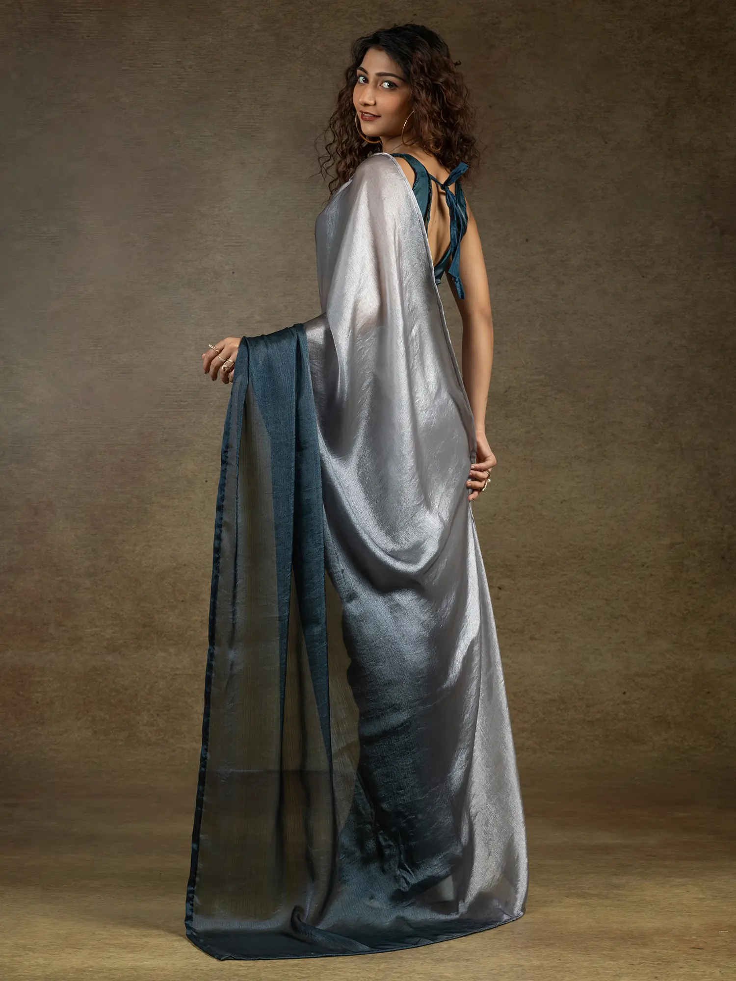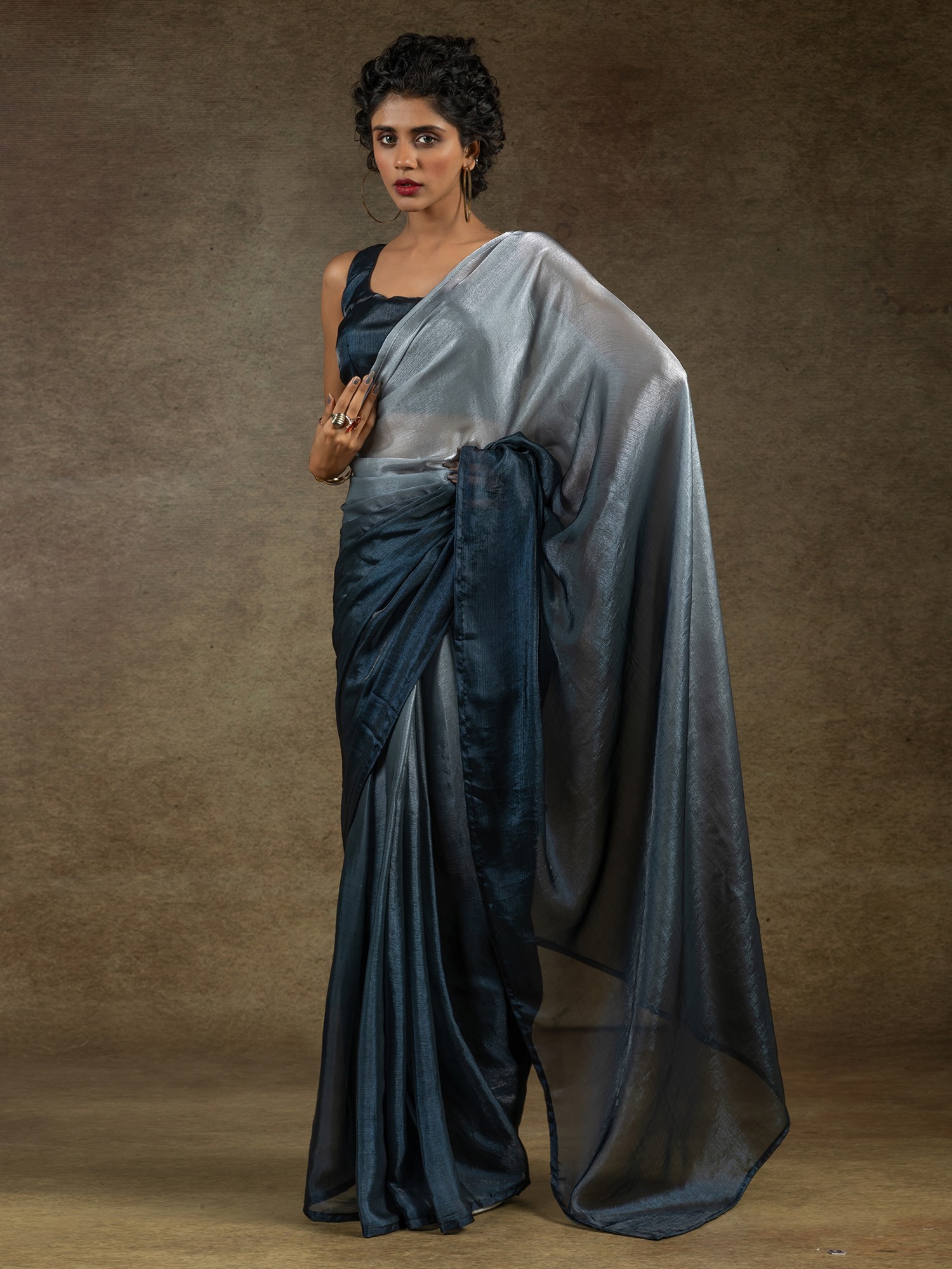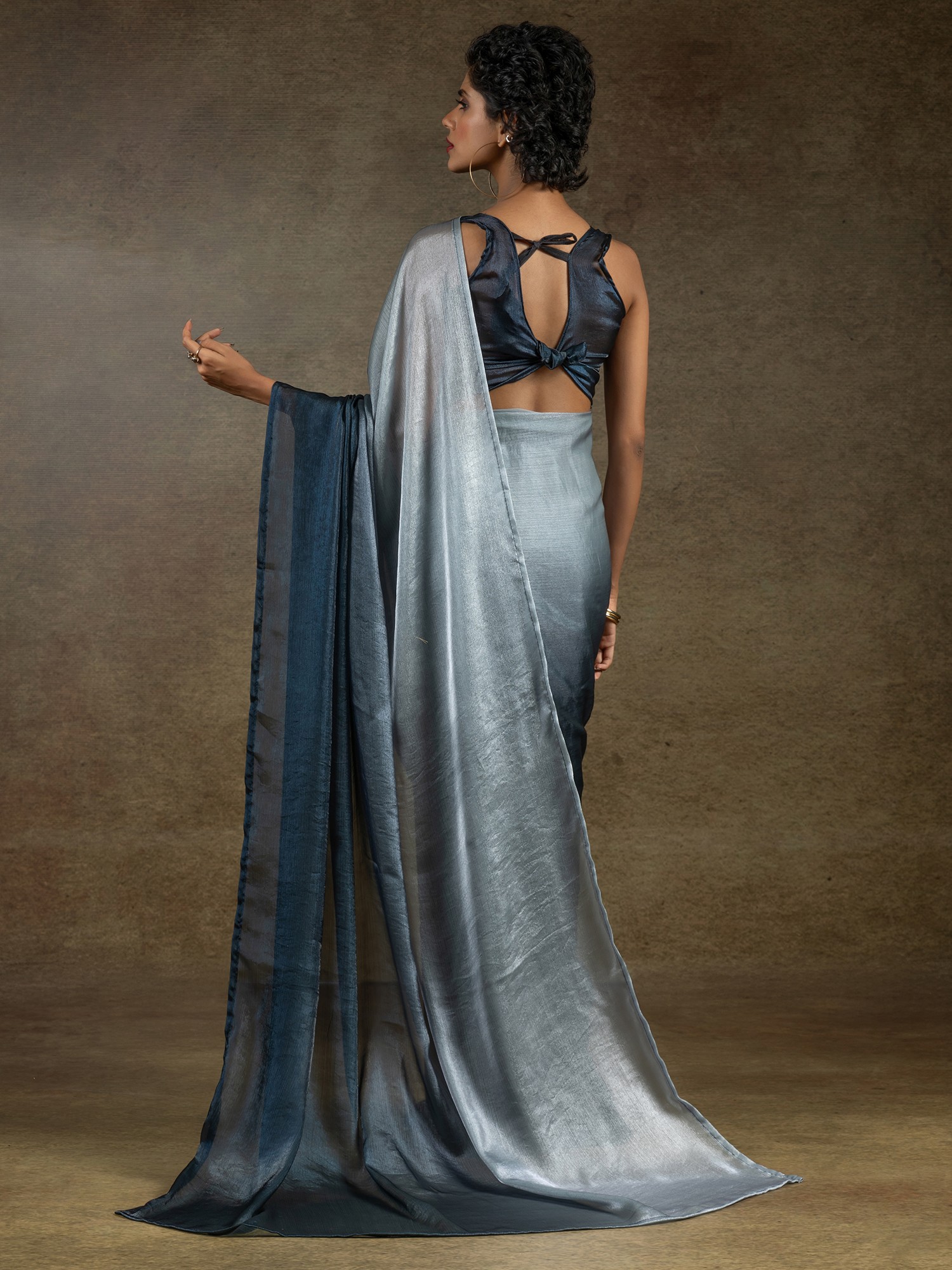 The captivating two-tone shading flows like liquid metal, transitioning from a soft, ethereal silver to a deep, opulent midnight blue. This gradient effect is not merely a color choice but a deliberate artistic statement, enhancing the inherent beauty of the satin silk. The innovative flexible multiple hooks closure is thoughtfully integrated, offering a discreet and remarkably effortless way to secure your drape, allowing the fabric to fall perfectly without compromise.