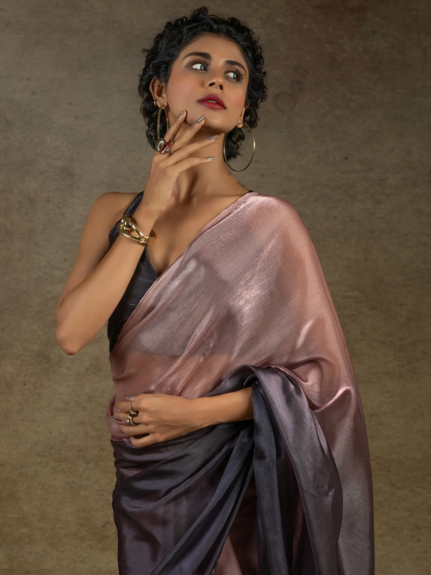 Foil Satin Mononet Saree With Dual Beads Sequins Embellishment Designer Partywear For Wedding Reception