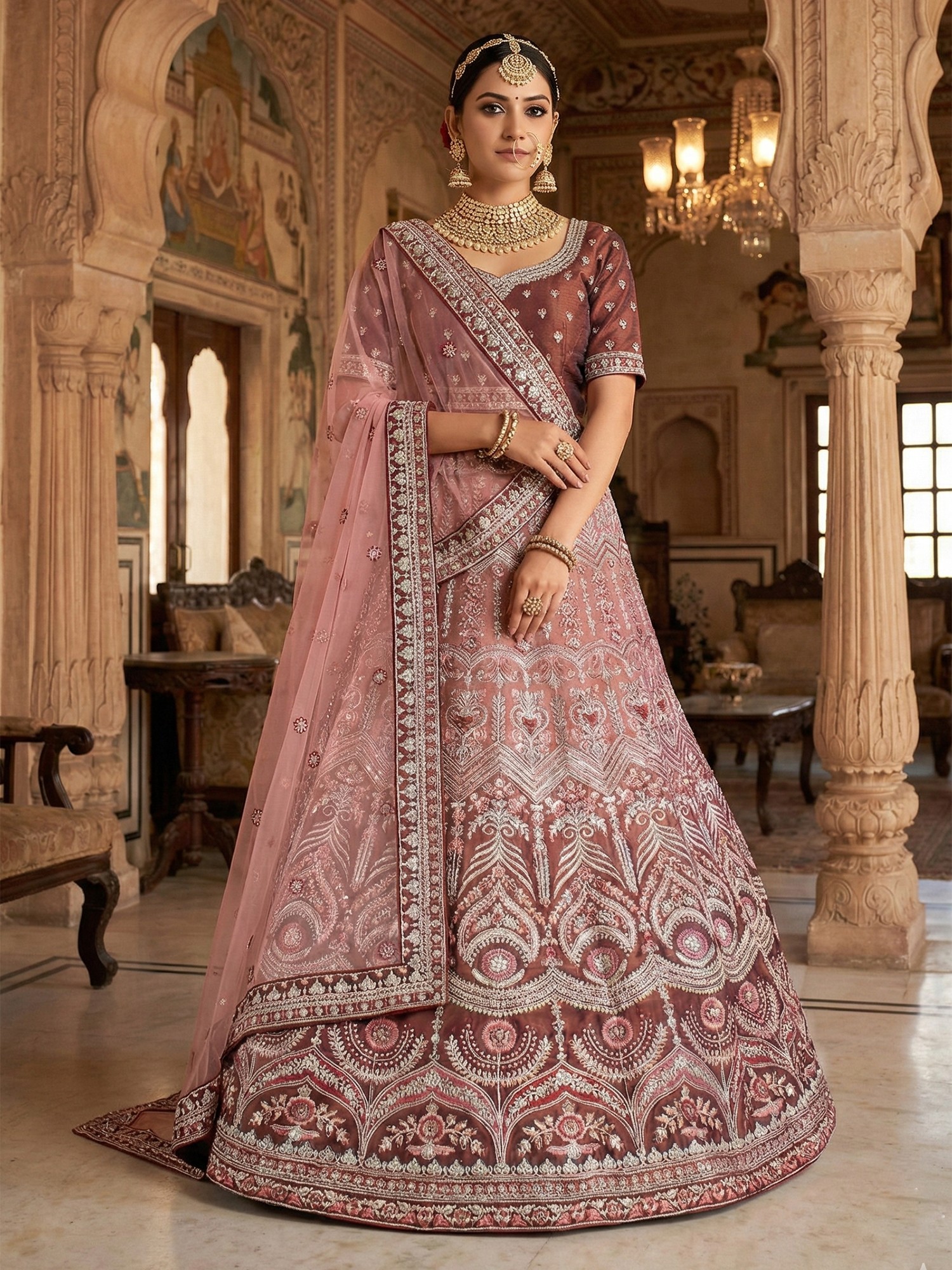 Luxurious Bridal Net Lehenga Set With Heavy Coding And Zarkan Embroidery Work For Wedding Ceremonies And Parties