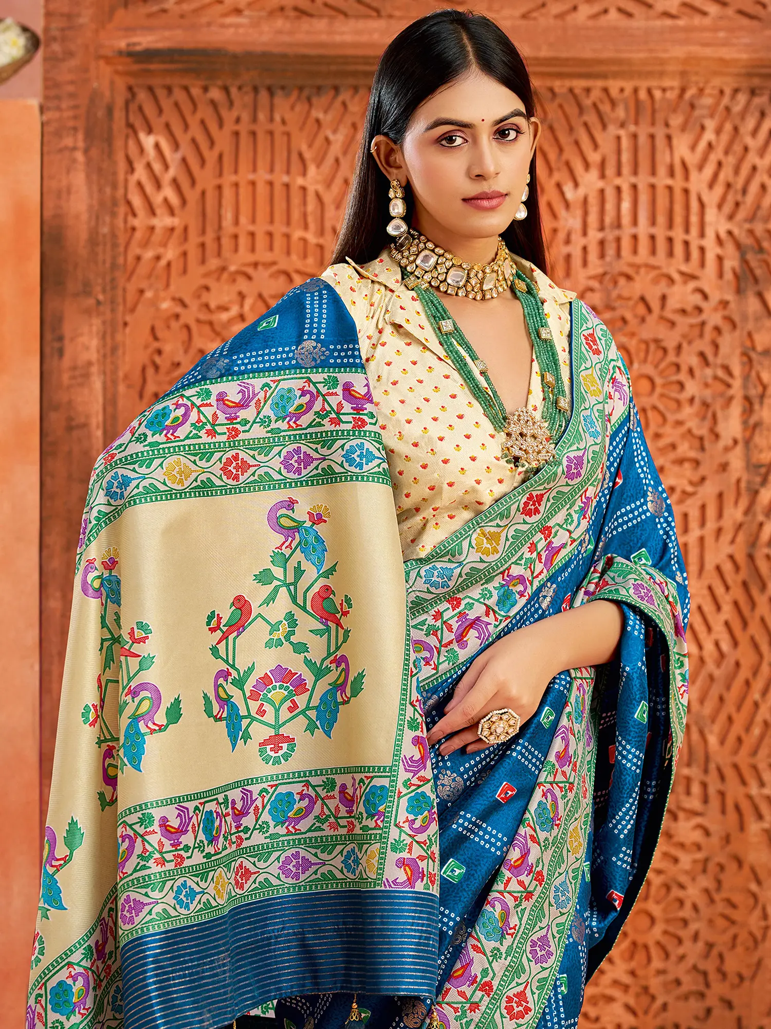 Vibrant Multicolor Velvet Tussar Silk Saree Featuring Boutique Printed Bandhani Motifs Perfect For Partywear And Festive Celebrations