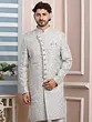 Aligarhi Pant Dupion Art Silk Paired With Jacquard Silk Indo Western Sherwani Set For Wedding Sangeet Reception Glam