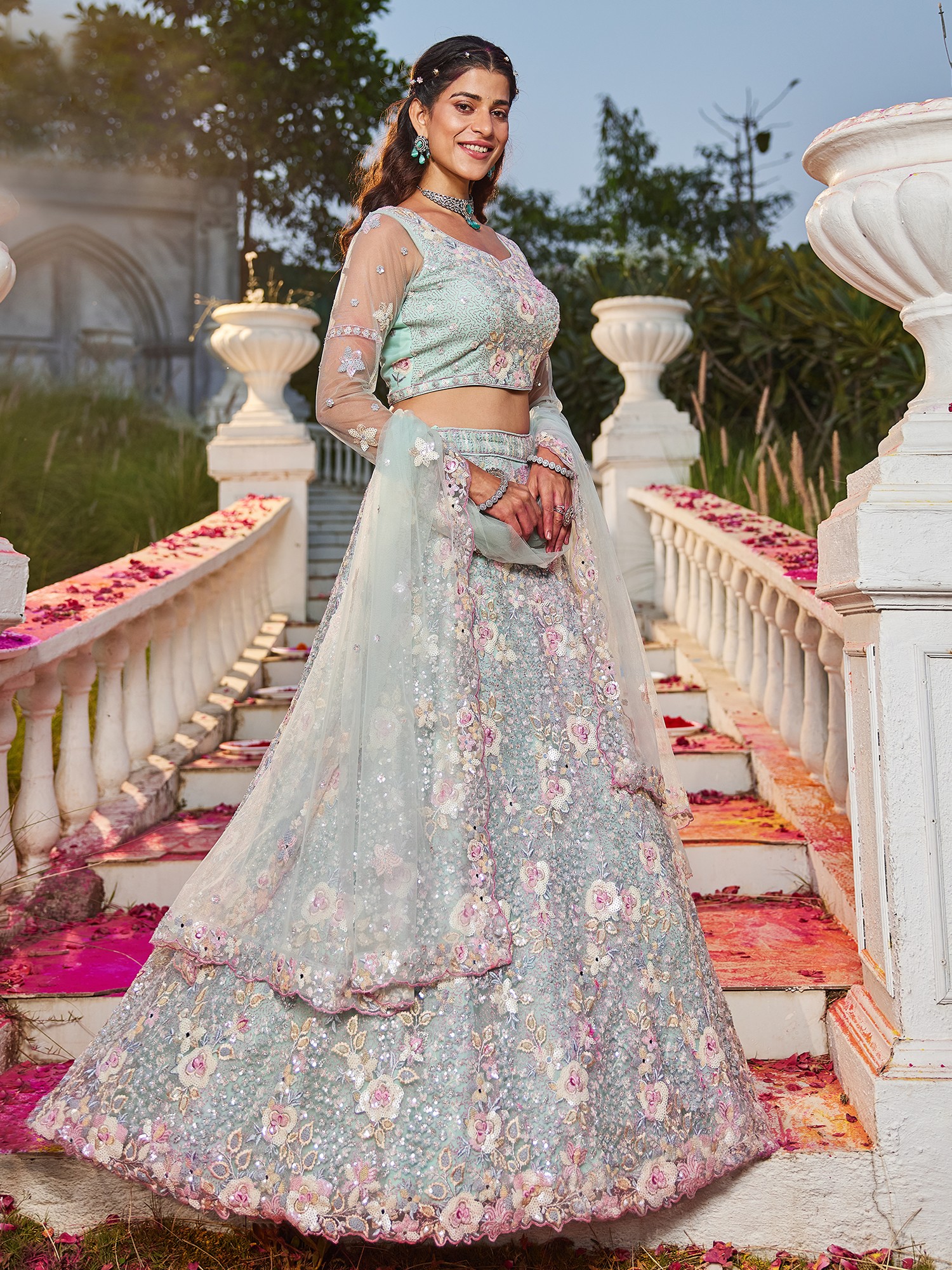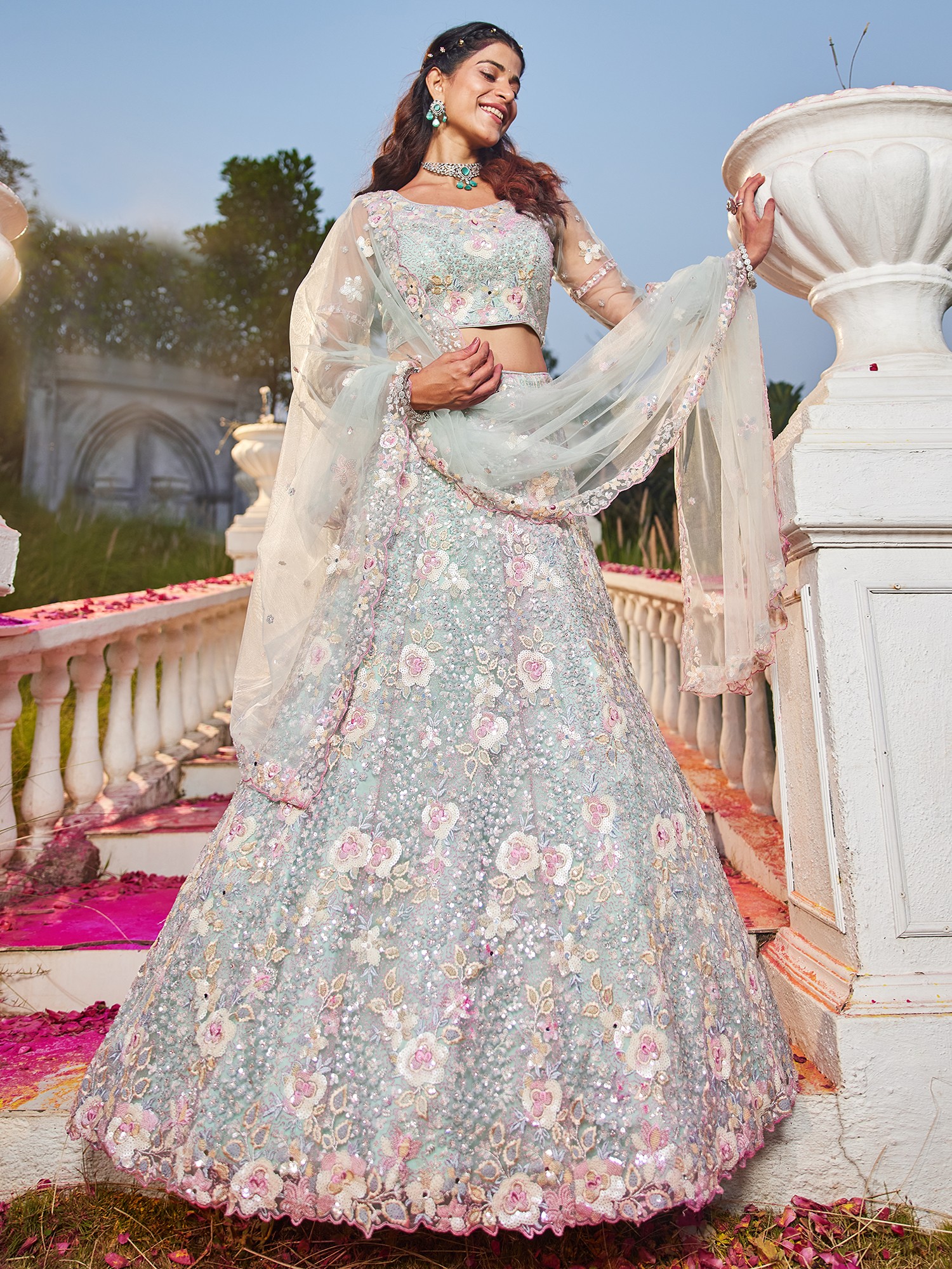 Opulent Net Lehenga Choli With Dupatta Set With All Over Sequins And Zarkan Embroidery For Bridal Wedding And Reception Wear