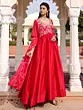 Royal Rangoli Silk Anarkali Suit With Dupatta And Crepe Bottom Highlighted By Luxurious Ribbon Work Embroidery