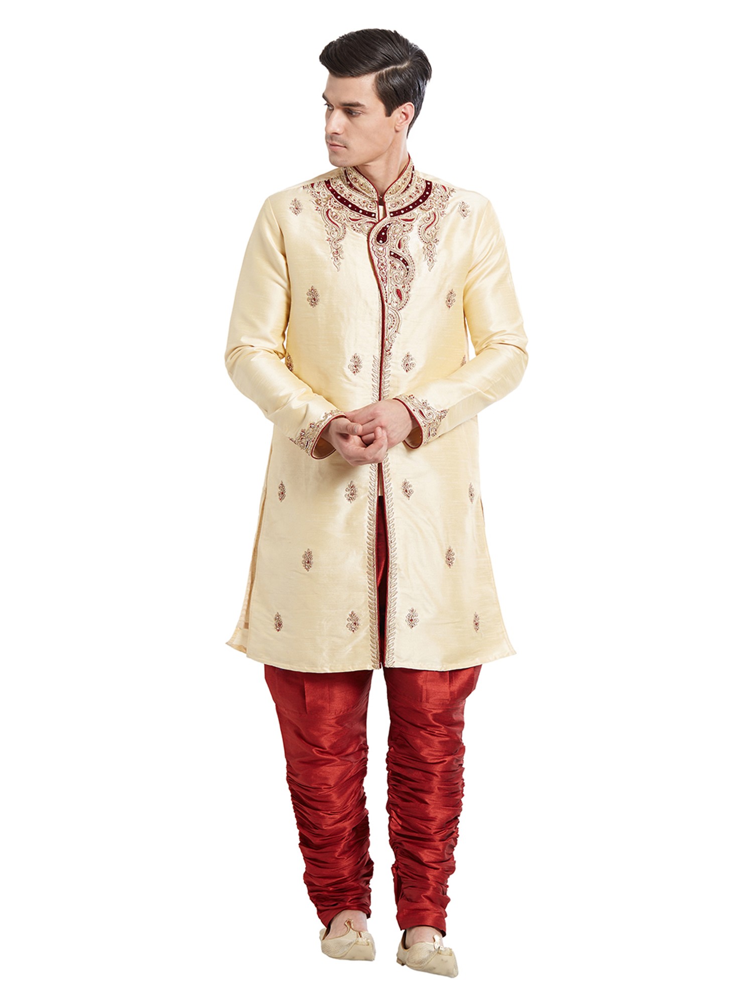 Embroidered Silk Sherwani for Men: Traditional Festive & Wedding Ensemble