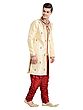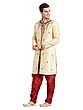 Men's Cream Art Silk Wedding Sherwani with Intricate Floral Embroidery