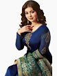 Lyons-Blue Ayesha Long Choodidaar Salwar Kameez Suit with Zari-Embroidery and Green Woven Dupatta