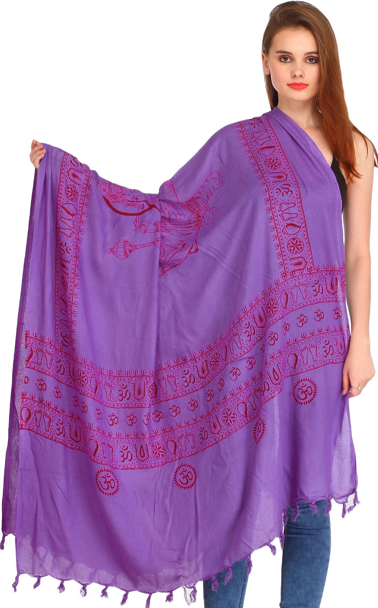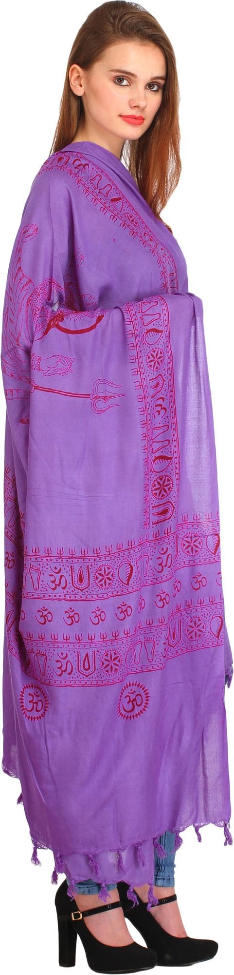 White-Alyssum Sanatana Dharma Om Printed Prayer Shawl with Shiva Parvati and Ganesha
