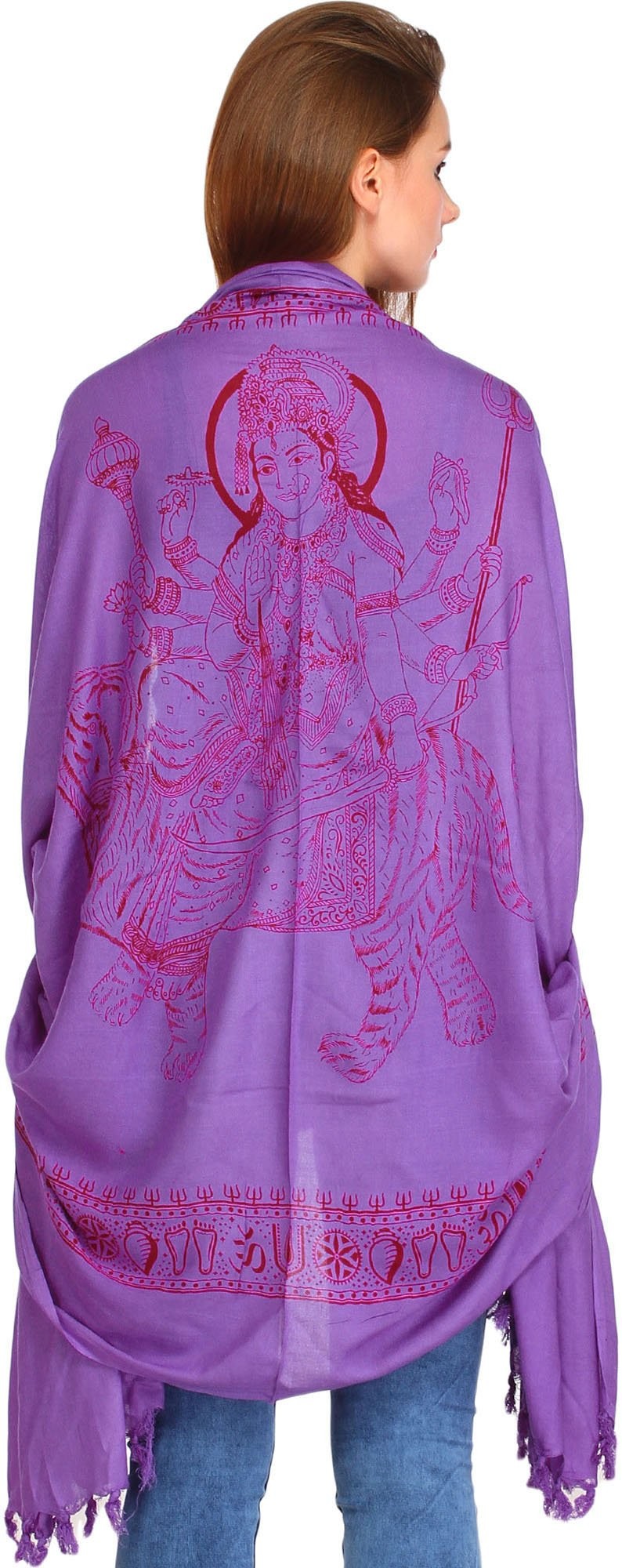 Pale-Marigold Prayer Shawl Printed Goddess Durga Figure