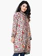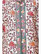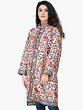 Snow-white Long Jacket from Kashmir with Chain Stitch Embroidered Multi-colored Flowers and Paisleys