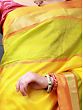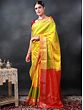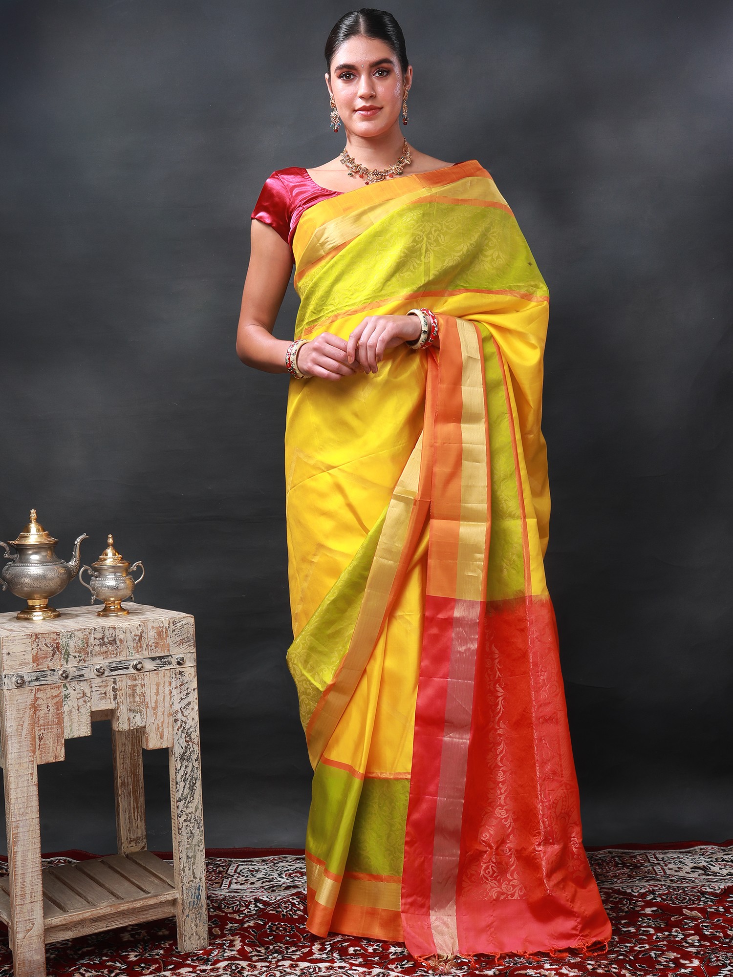 Golden-Orange Kanjivaram Pure Silk Saree with Woven Abstract Tree Pattern and Zari work Floral Pallu-Border from Bangalore