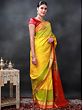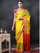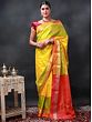 Parrot-Green Pure Silk Saree with Intricate Golden Thread work and Contrast Elephant Border from Bangalore